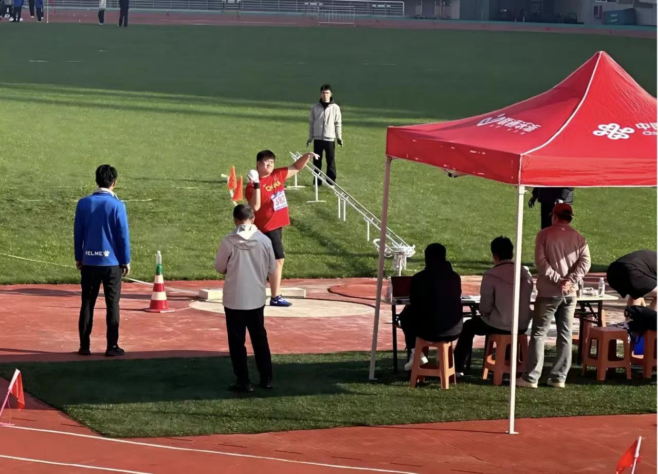 (泰山科技学院田径队队员铅球比赛照片)