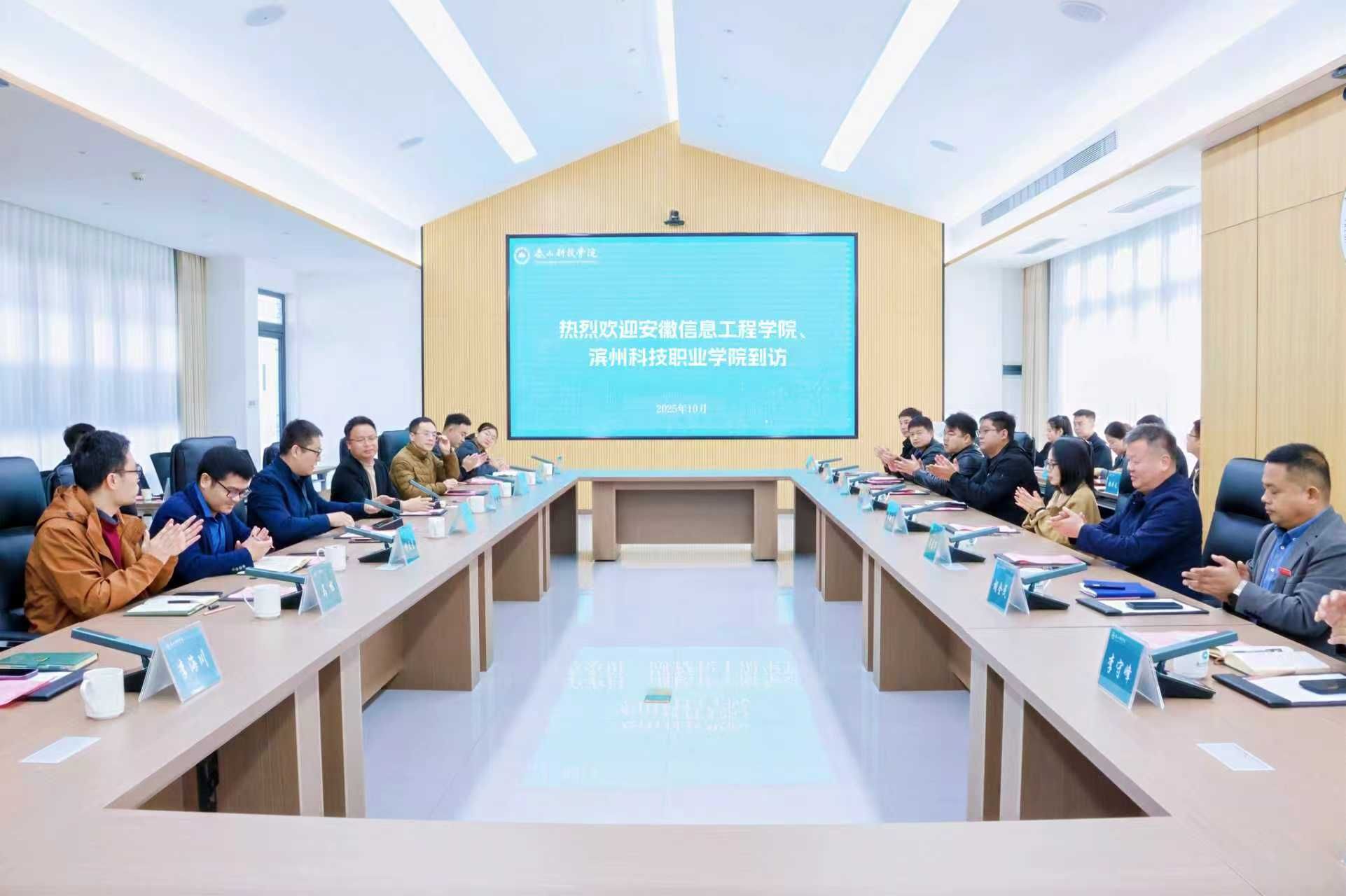 10月29日,安徽信息工程学院、滨州科技职业学院考察团一行二十余人到访泰山科技学院,就书院制建设、“一站式”学生社区打造、大学生创业赋能中心运营等重点工作开展考察交流。泰山科技学院副校长丁海奎,学生工作处、教务处、书院部、招生处及各二级学院相关负责人陪同参观并参与座谈。