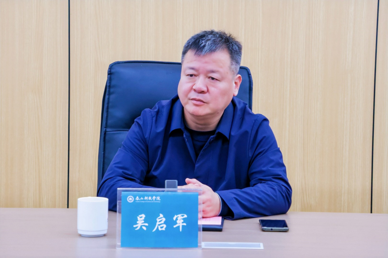 滨州科技职业学院副校长吴启军对泰山科技学院的热情接待与无私分享表示感谢。他指出,泰山科技学院学生的幸福感、优美的校园环境、“接地气”的教育培养目标深受启发,并介绍了滨州科技职业学院专业设置的相关情况。