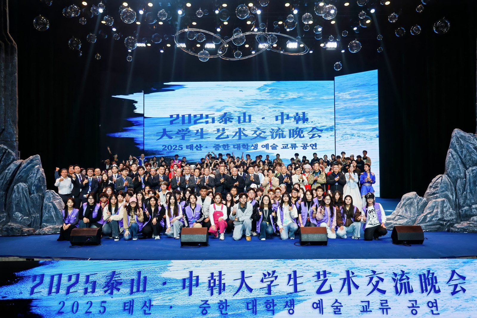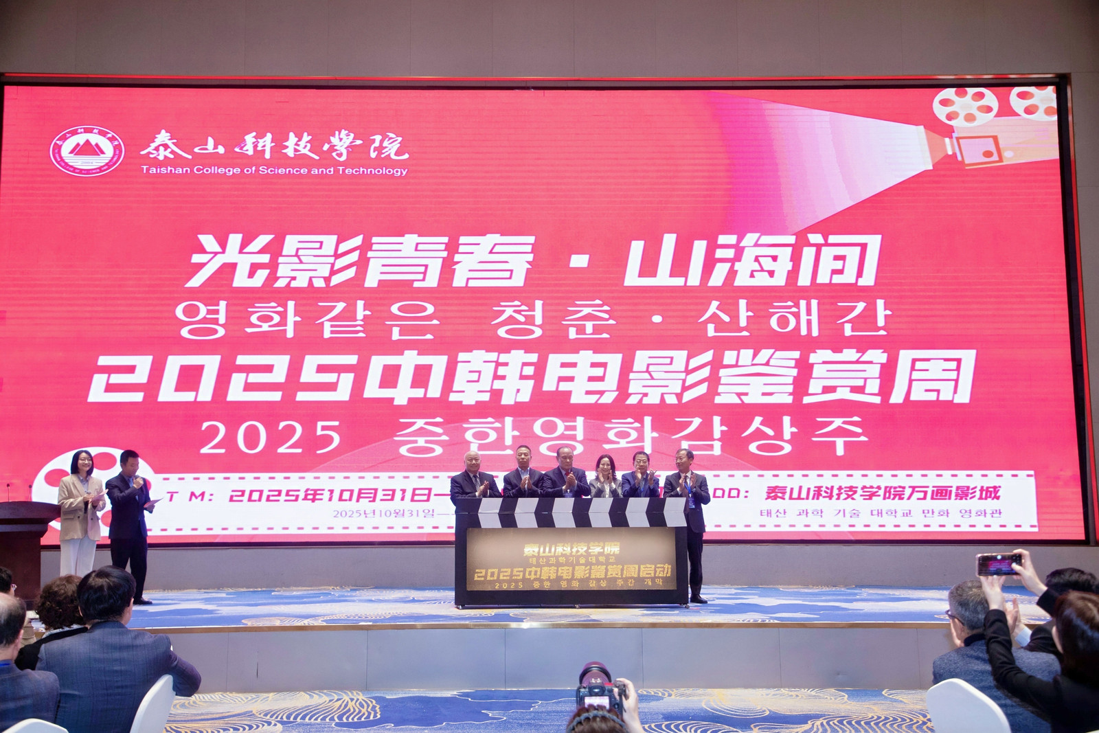 文化交融成为本届论坛的鲜明底色。首次亮相的“2025泰山·大学生文旅与非遗文化展”成为互动热点。嘉宾们体验泰山煎饼制作、组装榫卯模型,与非遗传承人零距离交流,亲身感受泰山文化的魅力。同期举办的“泰山·中韩大学生艺术交流晚会”以“看见、听见、想见、遇见”为脉络,将传统与现代、中韩风土与潮流文化巧妙融合,成为论坛期间跨文化交流的一大亮点。此外,“2025中韩电影鉴赏周”也于论坛前夕启动,将在泰山科技学院集中展映6部精选中韩优秀影片,并举办“泰山巨幕影谈”等文化活动,让与会代表与师生沉浸式体验中韩电影艺术。
