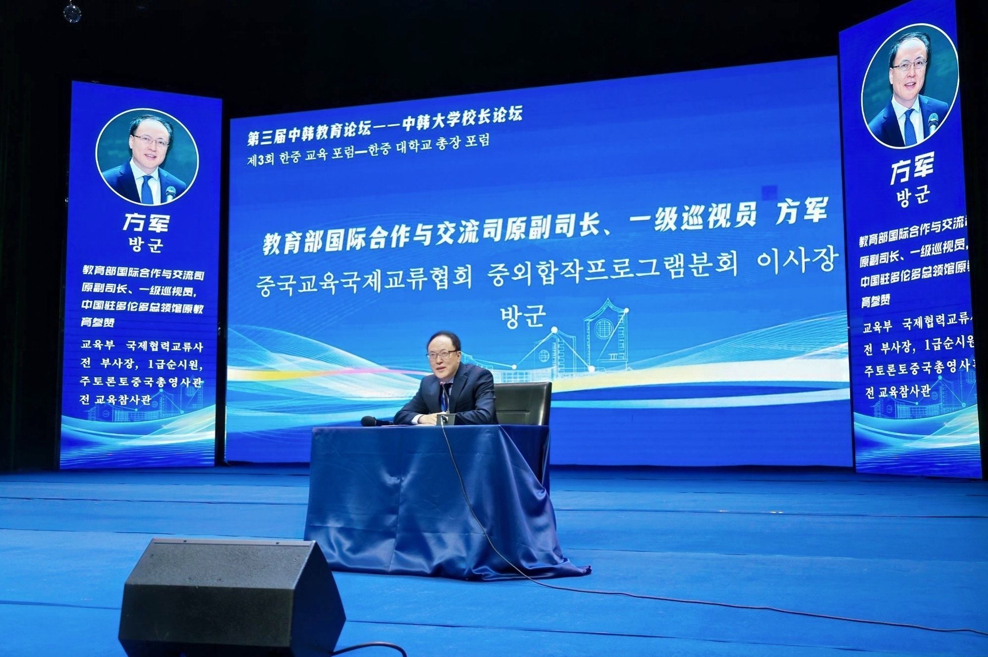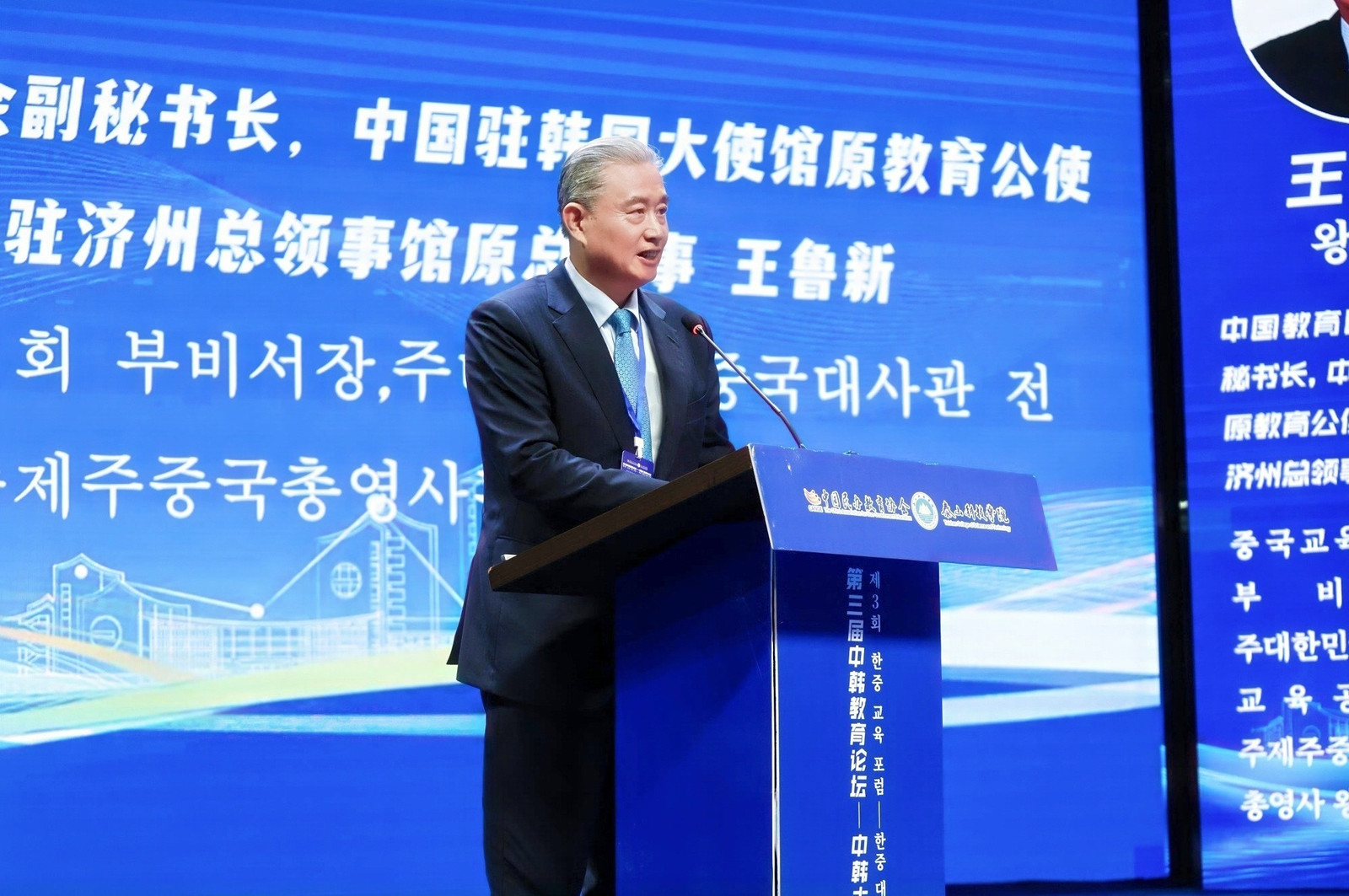 中国教育国际交流协会副秘书长王鲁新在致辞中结合刚参加的第26届中国国际教育年会,强调了深化合作仍是全球教育界的共同心愿。他以其在韩工作的亲身经历,肯定了中韩教育合作在促进双边关系中的独特作用,并乐见本论坛成为机制性对话平台。