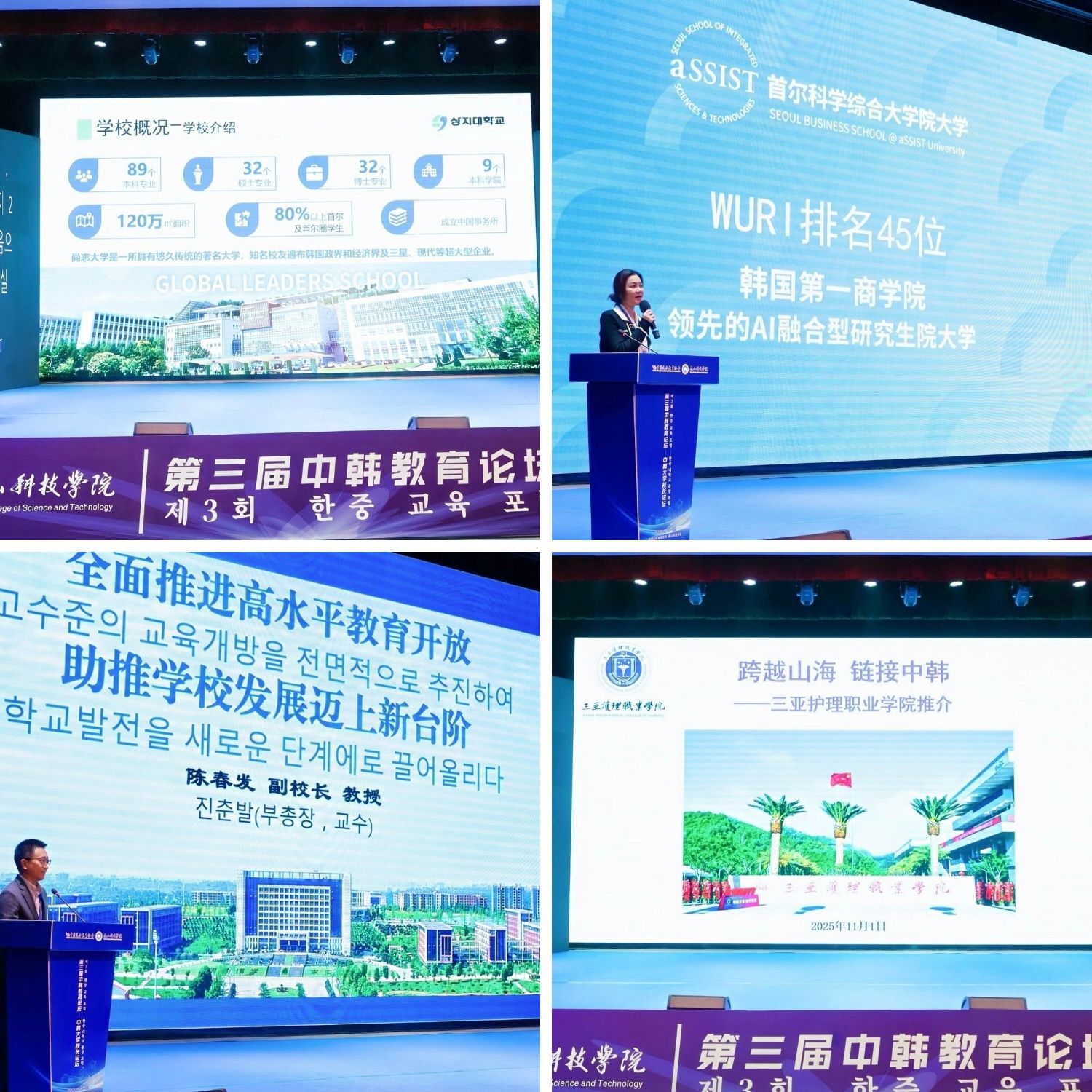 专题报告环节由四川大学锦江学院校务委员会主任、四川大学原副校长晏世经教授主持,青岛黄海学院、全州大学、吉林动画学院、世翰大学、广州工商学院、巨济大学共六所中韩高校代表,围绕人才培养、校企协同、区域创新等议题,分享了各校在产教融合与国际合作方面的典型经验与实践案例,内容涵盖智能制造、数字文创、商科教育、区域治理等多个领域。
