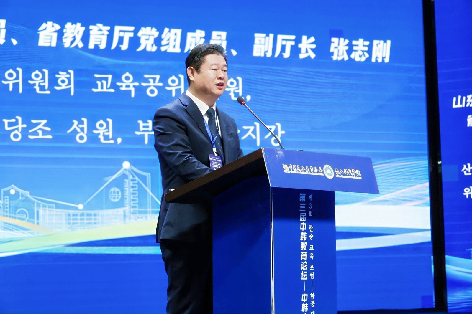 山东省教育厅副厅长张志刚表示,山东与韩国隔海相望,在多领域开展务实合作,教育领域交流密切、成果丰硕。他提出三点合作倡议:一是聚焦发展关切,加强科研协作,共建联合实验室;二是拓宽人员往来,增进友好感情,支持更多师生互访;三是推进高水平合作办学,努力构建多层级、多类型的教育交流合作体系。