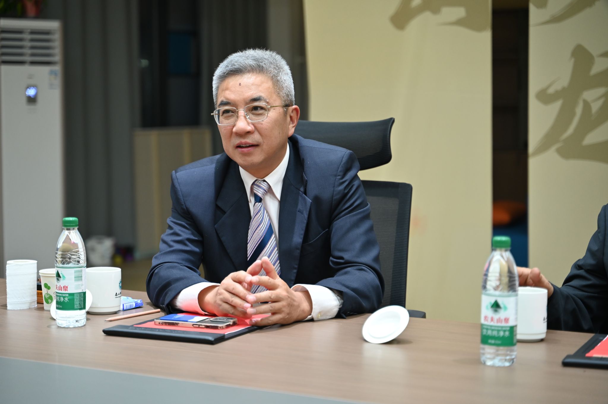 座谈尾声,张亮诚挚邀请马俊杰未来与泰山科技学院开展更深层次合作,包括举办专题讲座、推荐青年教师、共建创作课题等,共同探索“幽默与深刻”在文学表达中的融合与创新。