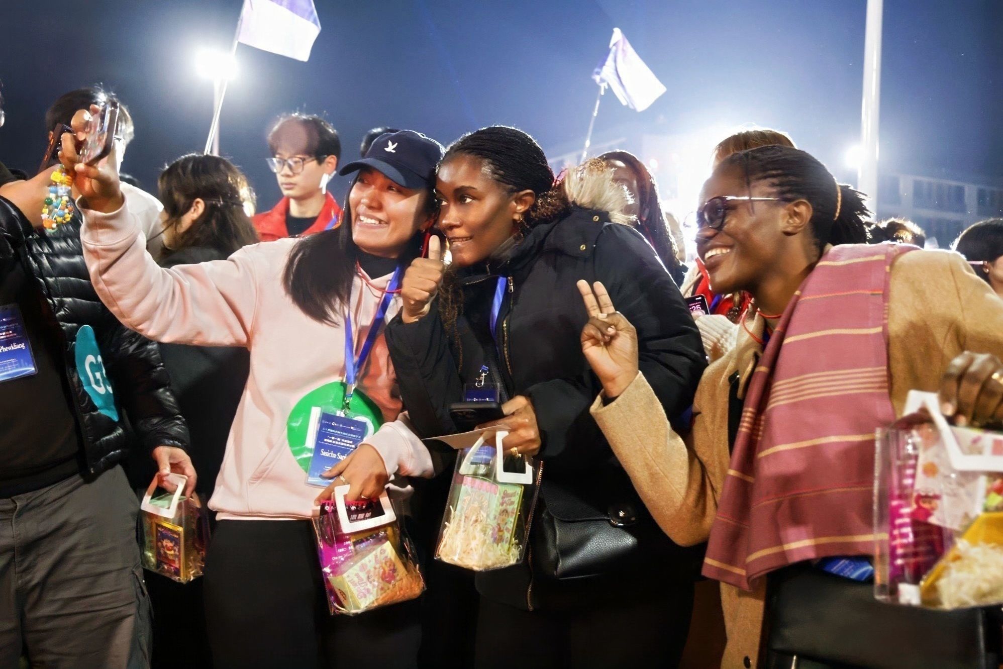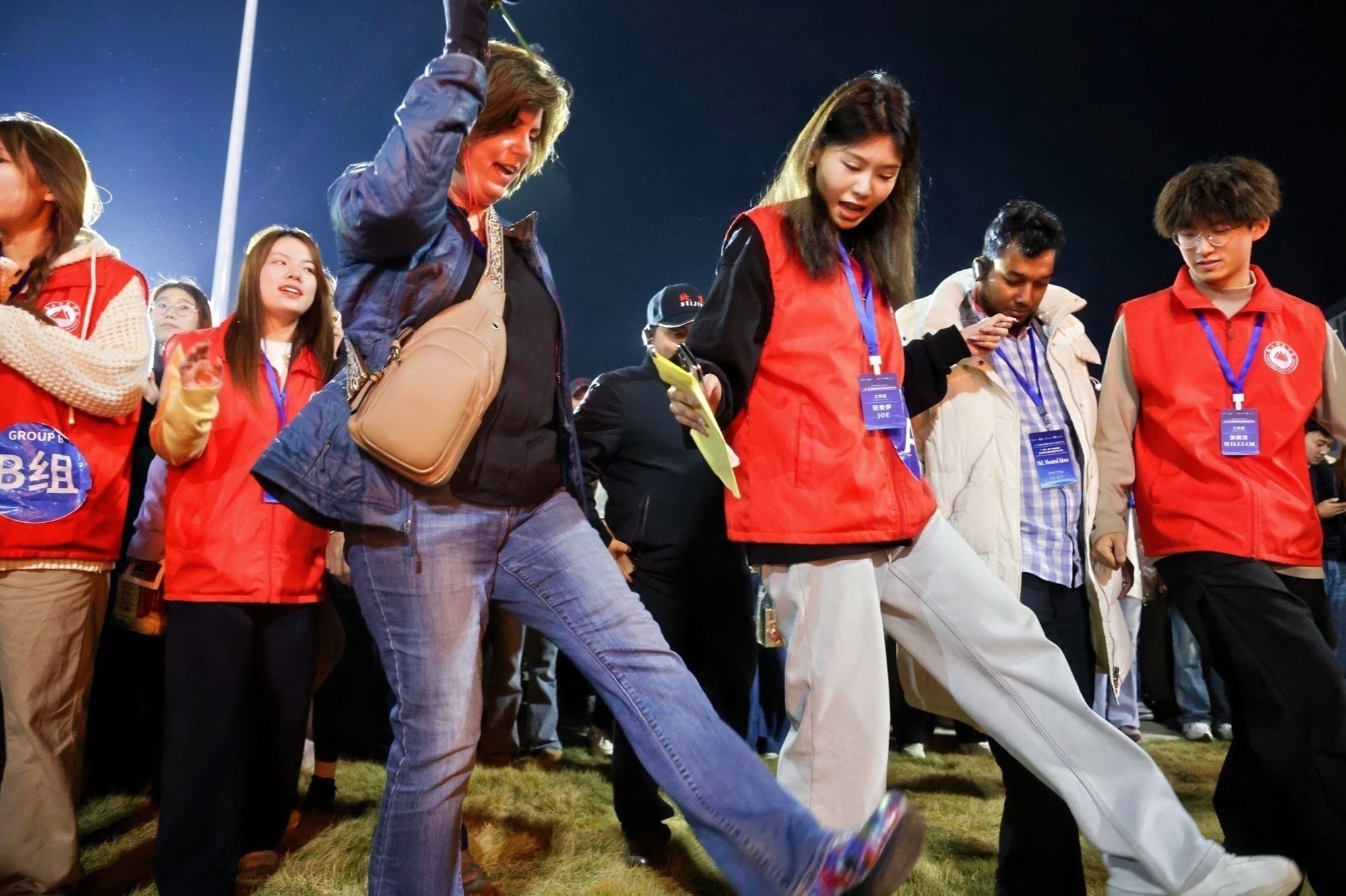 在当晚举办的2025书院篝火文化节暨“爱在书院”师生集体生日会第36期:“谁还不是个孩子呢”活动现场,全体学员沉浸式感受书院家文化氛围。主办方以贴心细节设计打破语言与文化隔阂,让各国代表在异国他乡感受到家人般的温暖,生动诠释了学校鼓励学生“友好地为所欲为,放肆的野蛮成长”的校园文化。来自巴勒斯坦的Mohammad matar Mustafa在篝火晚会结束后激动地告诉志愿者,“这是一场非常精彩的活动,我非常喜欢。有美妙的音乐、现场的人群,还有互动环节。真的是一次很棒的活动,而且所有的学生都以非常非常非常美好的方式参与其中。这是梦想大学里的活动,感谢你们举办,也感谢你们的邀请。”