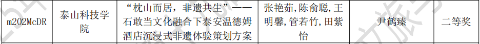 本次参赛是泰山科技学院深化产教融合育人模式的生动实践。学校构建了“行业需求导向—校企协同育人—赛事实战检验”的培养体系,积极整合酒店、文旅、会展等行业的龙头企业资源,邀请企业高管、行业专家与校内教师共同组建联合指导团队,将企业真实项目需求转化为竞赛选题,有效提升了学生的实践创新能力。同时,学校通过组织师生参与行业会议、深入会展一线场景等方式,精准把握行业前沿动态,强化沉浸式实践教学。