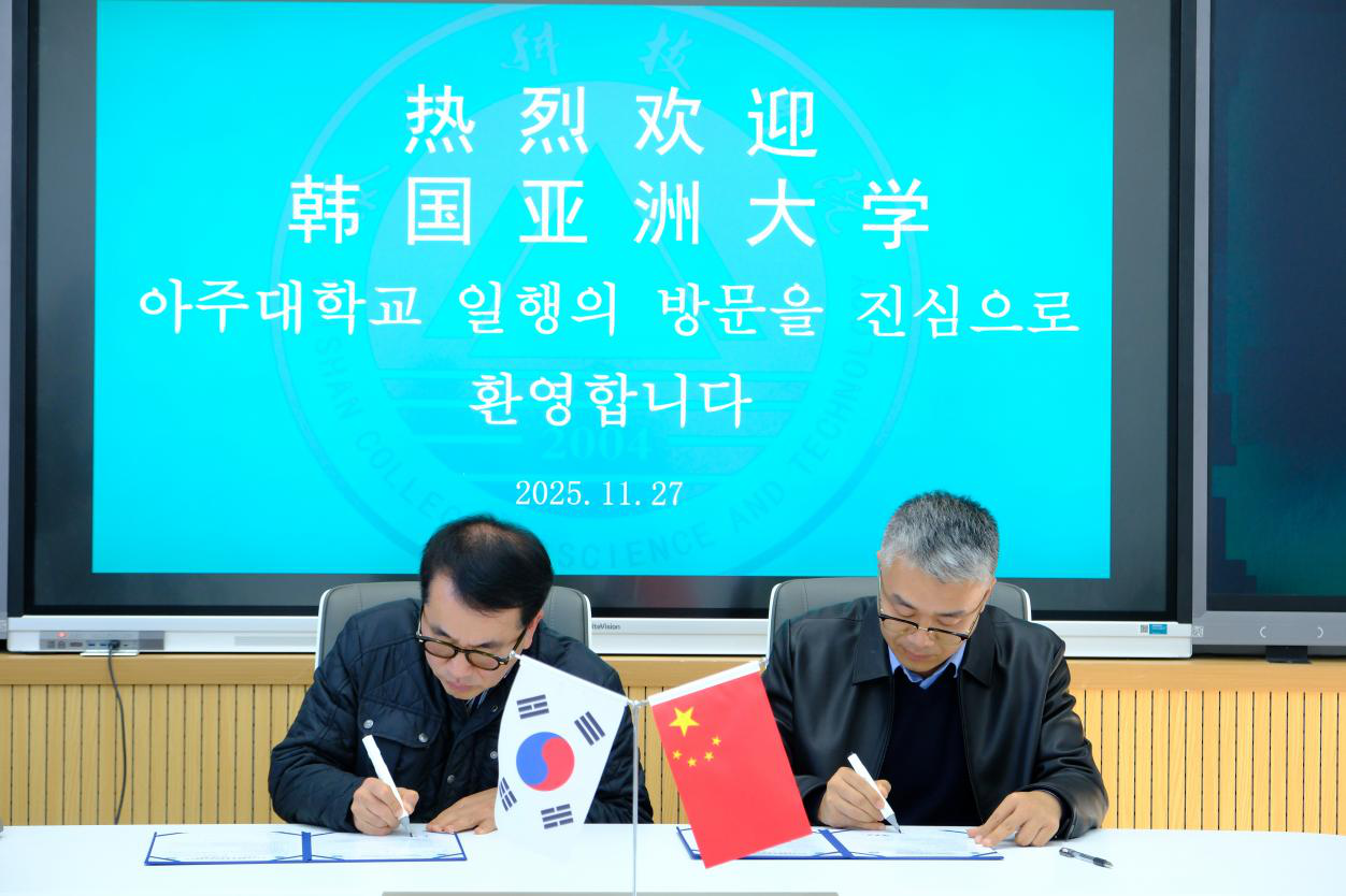 为深化中韩教育交流,共育具有国际视野的高素质人才,2025年11月27日,韩国亚洲大学国际协力副校长李硕远、国际处入学部部长金昌显、国际处入学部主任李宣慧一行到访泰山科技学院。泰山科技学院副校长智英斌及相关部门负责人热情接待了来访嘉宾,双方围绕意向合作项目展开深度洽谈,达成多项共识。