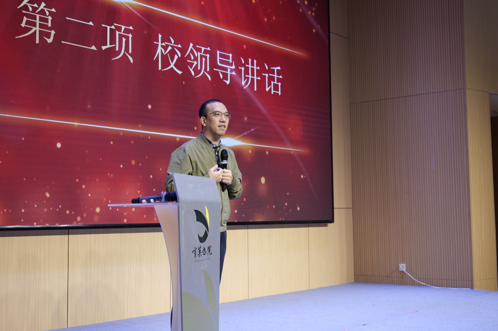 泰山科技学院常务副校长谢承红致欢迎辞。他向年会的召开及过去一年三校四区创意写作团队所取得的成绩表示祝贺,并从“一次相逢、一次审视、一次出发”三个角度进行了分享,期待中国高校最大的作家群体相逢创造和延续可观的智慧、共识与力量;在创意写作教学过程中,要重视人工智能浪潮下“师-生”二元关系向“师-机-生”三元关系的转换以及带来的挑战、机会;祝愿通过此次年会后一起再出发,在创意写作教学中交付学生思考、阅读、想象力等关键能力,用教师和作家的常识、直觉和经验等人工智能时代最宝贵的内涵让学生成长并更好应对未来。