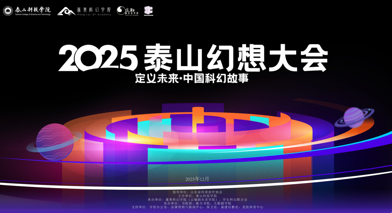 12月6日,2025泰山幻想大会启动仪式暨2025中国泰山·科幻高峰论坛在泰山科技学院正式开启。来自全国各地的科幻名家、学界泰斗、行业精英齐聚泰山科技学院,共同见证2025年中国科幻界最后一次意义非凡的校园盛会。