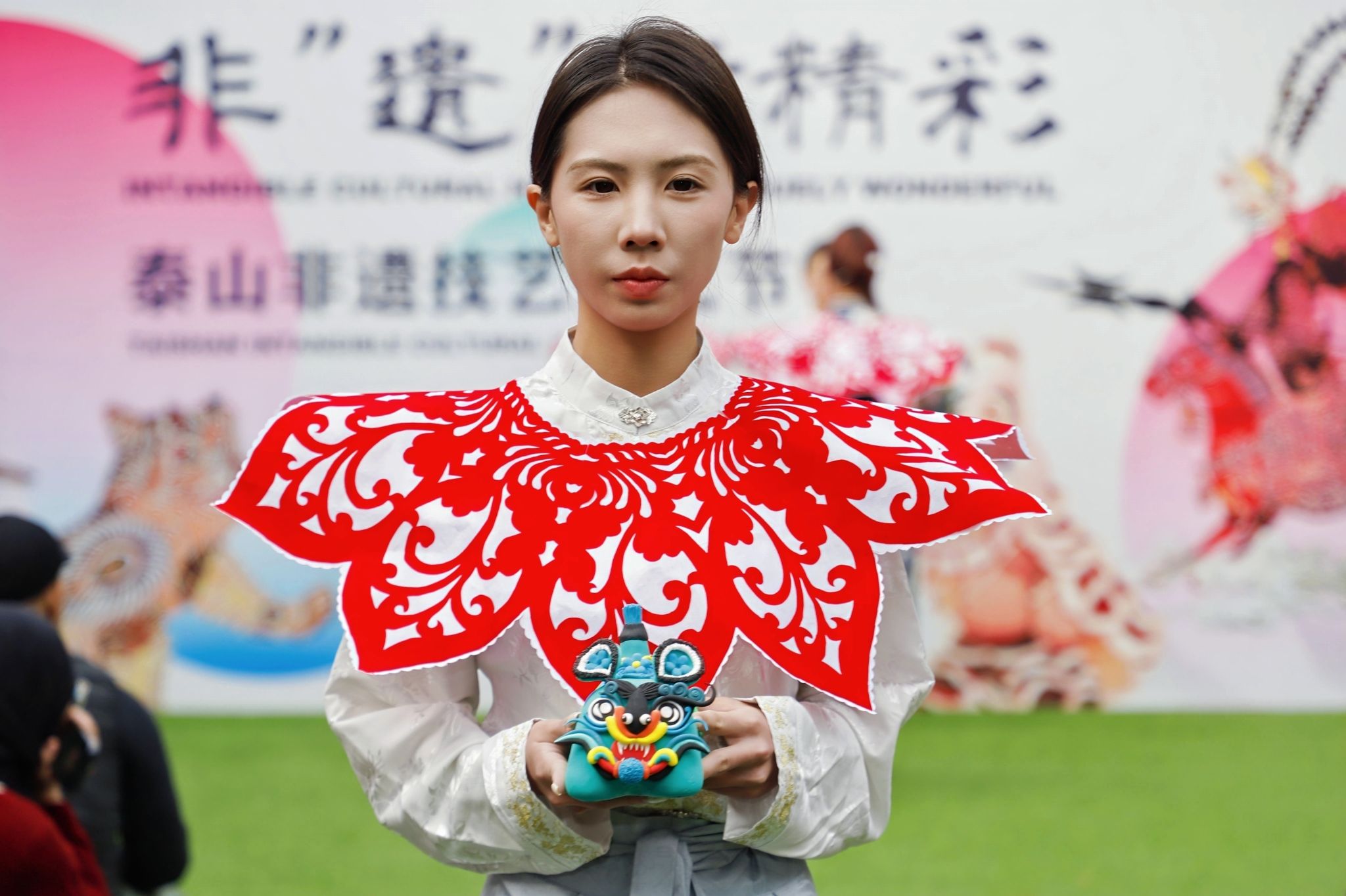 中心构建了“一馆一厅九工坊”的立体化空间格局,泰山非遗展览馆、泰山石敢当展厅等成为展示泰安地区非遗项目的重要窗口,剪纸、面塑、陶艺、舞狮、豆腐等非遗工坊为师生提供了沉浸式学习与实践环境。通过“传承——创新——传播”与“校园——社会——校园”的双向循环机制,实现非遗活态传承与文化育人深度融合,全面提升师生文化自信与非遗传承实践能力。