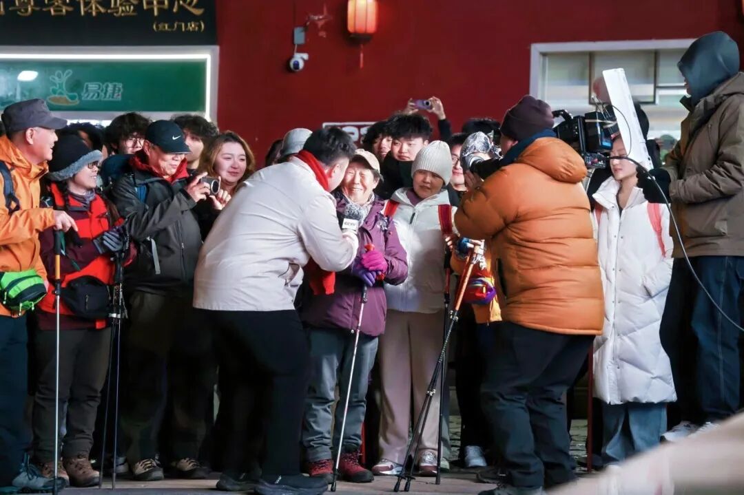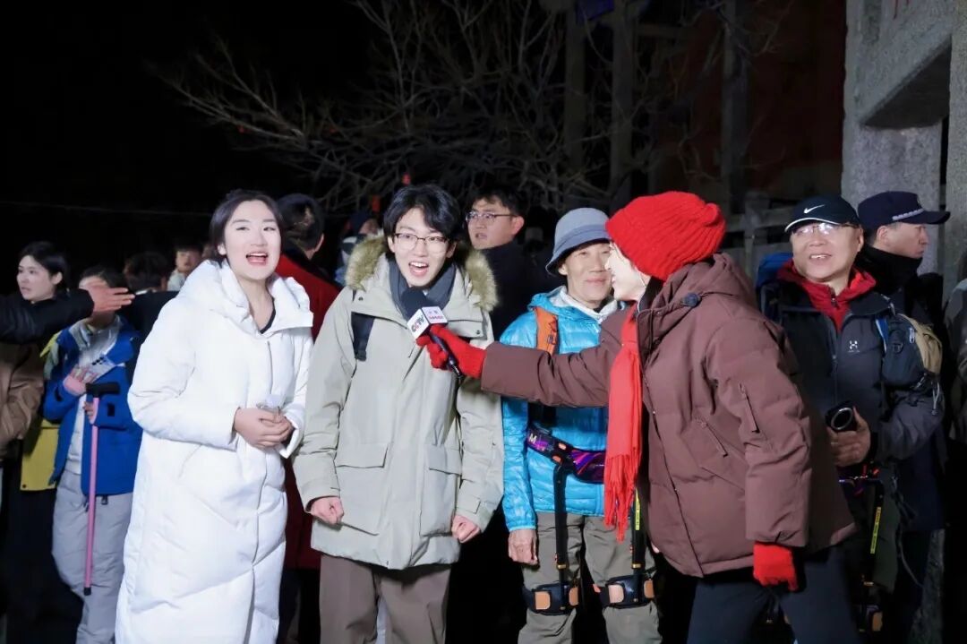 在中天门休息间隙,央视记者对师生进行了采访。谈及新年愿望,学生田泽婓、陈韦宜欣笑着说:“希望期末不挂科,开心过大年!”