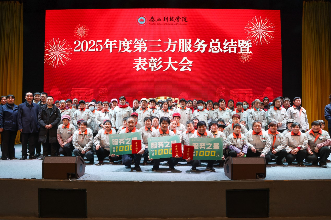 1月8日,泰山科技学院2025年度第三方服务总结暨表彰大会在校内青未了剧场举行。会议全面总结了过去一年学校第三方服务保障工作,表彰了一批表现突出的服务人员,旨在树立典型、凝聚共识,进一步提升校园服务保障水平,营造和谐育人环境。