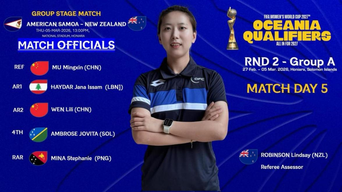 在两场关键执法中,牟明新展现了高水平的执裁水准。面对高强度对抗与快节奏攻防,她哨音果断、判罚精准,妥善处理赛场突发情况。尤其是在美属萨摩亚对阵新西兰的出线关键战中,她的精准判罚为赛事公平有序推进提供了坚实保障,其专业的赛场管理能力与严谨态度,赢得了赛事组委会、各参赛队伍及现场球迷的高度认可。