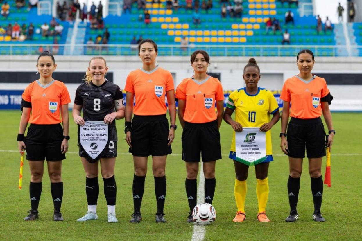 近日,2027年巴西女足世界杯大洋洲区预选赛第二轮比赛在斐济与所罗门群岛落幕。泰山科技学院竞技体育中心足球教练、国际级裁判员牟明新受大洋洲足球联合会(OFC)邀请,远赴赛事一线参与执法工作,以专业表现展现中国裁判的实力。