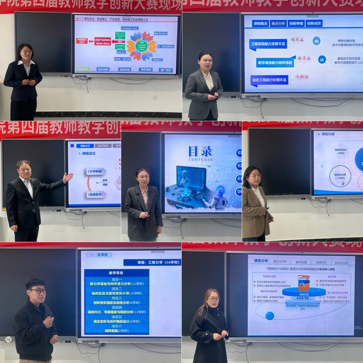 现场汇报中,参赛教师紧扣课程的高阶性、创新性与挑战度建设要求,围绕人工智能赋能教学、课程思政深度融合等教学改革热点,通过技术融合、内容重构与模式创新,全面展示了学校教师潜心教学、勇于创新的专业风采。