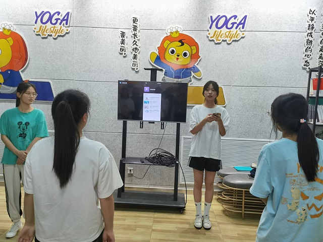 初次见面的女生们相对腼腆,为让女生们更好的投入课堂,在课堂开始前播放了几首暖场音乐,在舒缓的节奏中同学们逐渐放松下来,接着便开始了第一组运动,为防止同学们在后面的锻炼中出现如抽筋、拉伤等不适,组织者们选择身体激活训练,全面的拉伸能够让同学们的身体适应接下来的运动,视频中的女生不仅可以带领大家活动,还为大家展现了独属于女性的美。