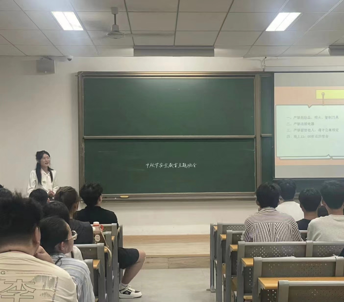 辅导员王晓敏为中秋节在校的同学们开展了一次安全教育班会。强调了假期期间的安全问题,提醒同学们不论是在校内还是校外,都要时刻保持警惕,注意人身和财产安全,提醒同学们,出行时一定要遵守交通规则,不随意横穿马路,确保自己和他人的安全。在享受假期的同时,也要注意食品安全,不吃过期、变质的食物,防止食物中毒。以及提醒同学们注意网络安全,不随意点击不明链接,不泄露个人信息,保护好自己的网络安全。最后希望同学们能够合理安排假期时间,适当休息,保持良好的生活习惯,确保度过一个愉快而充实的中秋节假期。