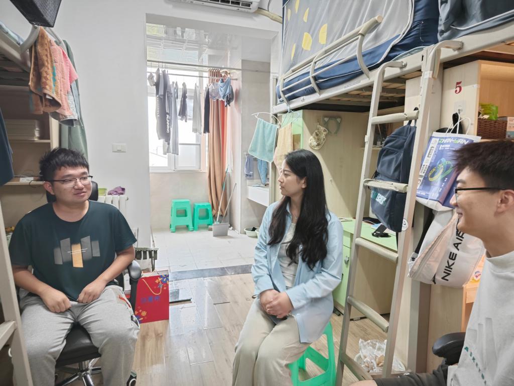 辅导员刘雪为掌握学生思想动态和假期动向,对所带学生宿舍进行逐一走访。在走访过程中,刘雪老师与同学们进行充分沟通,了解同学们开学后宿舍适应及学习情况,掌握学生假期动向。刘雪老师提醒同学们在离校前一定关好门窗、切断宿舍电源、妥善保管好贵重物品,在假期间出门要注意交通安全,乘坐正规运营车辆,加强自身保护意识和安全意识。同时,刘雪老师希望同学们在享受假期的同时,做好合理规划,不要忘记学习,以饱满的精神状态尽快适应新学期生活。