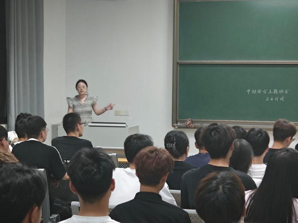 辅导员东野圣萍组织2022级本科学生开展“中秋假期安全教育”主题班会。东野老师重点强调了中秋假期前后学生出行安全、电信诈骗、预防溺水、传染病预防、饮食安全、心理健康安全等方面,强化安全意识,时刻紧绷安全这根弦。通过开展此次安全教育,不仅增强了学生的安全防范意识,也提高了学生的安全防范能力,让大家度过一个愉快、健康、平安的假期。