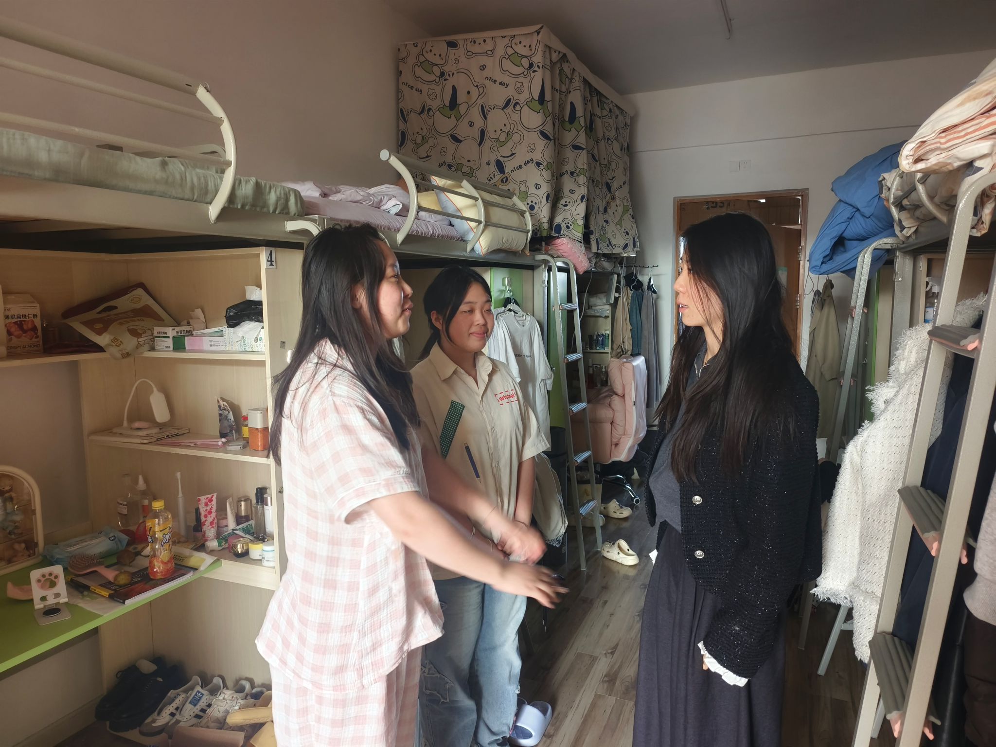 对照“卫生整洁度、物品收纳规范、学风氛围营造”三大核心指标,逐间查验星级宿舍标识维护、文明公约执行情况;