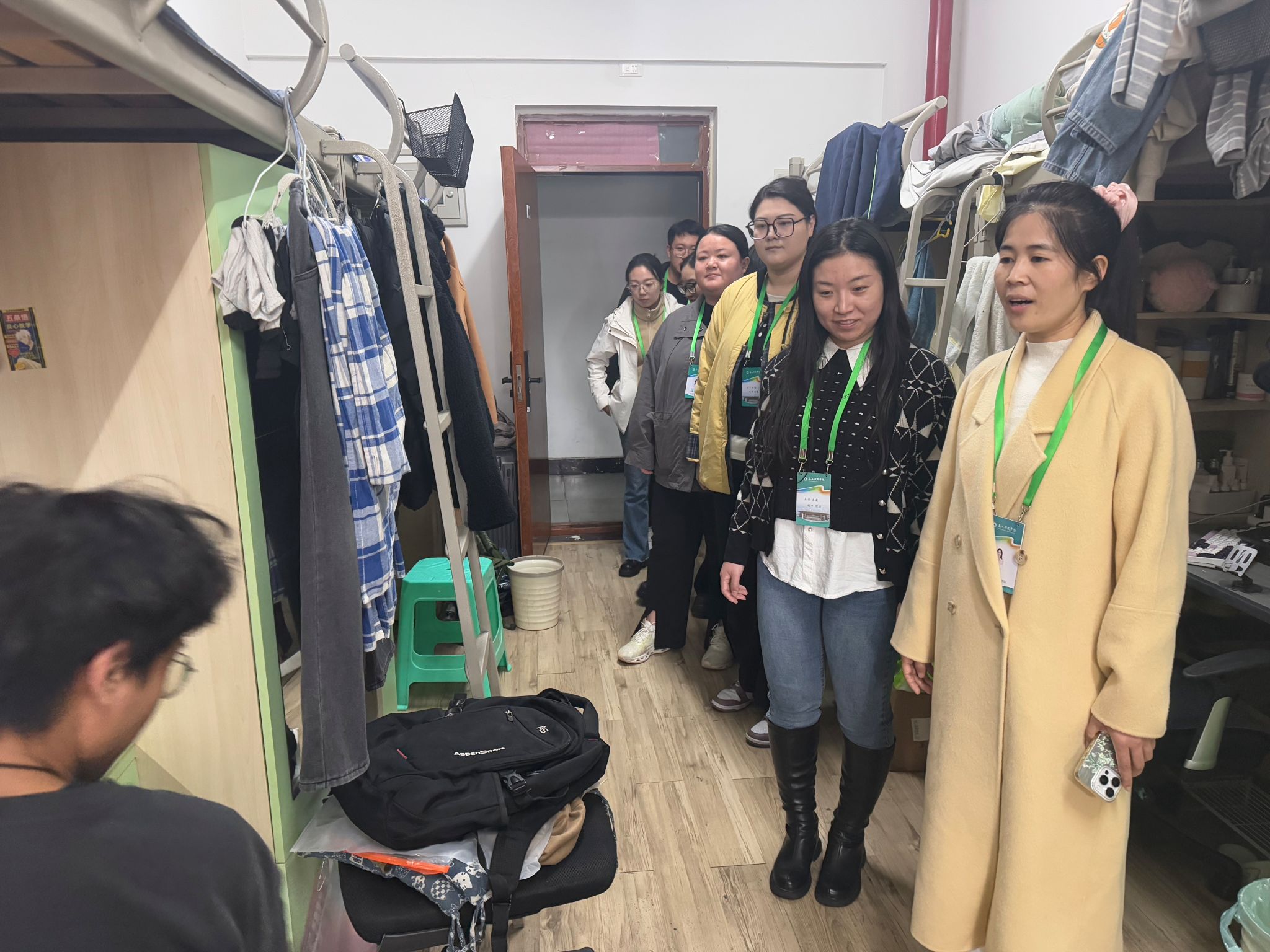 本次宿舍走访活动紧紧围绕“精准对接需求、助力成长成才”这一核心主题展开。在前期准备中,老师们已针对高年级同学的实际情况,明确了走访重点——聚焦学业规划、就业准备、考研备考及学习、生活具体困难等问题,力求解答服务精准到位。走进宿舍,老师们以“朋友”姿态与同学们深入交谈:从日常饮食起居的细节关怀,到课程学习的难点探讨,再到未来发展的方向规划,亲切的话语与耐心的倾听,让宿舍内暖意融融,同学们主动分享着成长中的困惑与期待。
