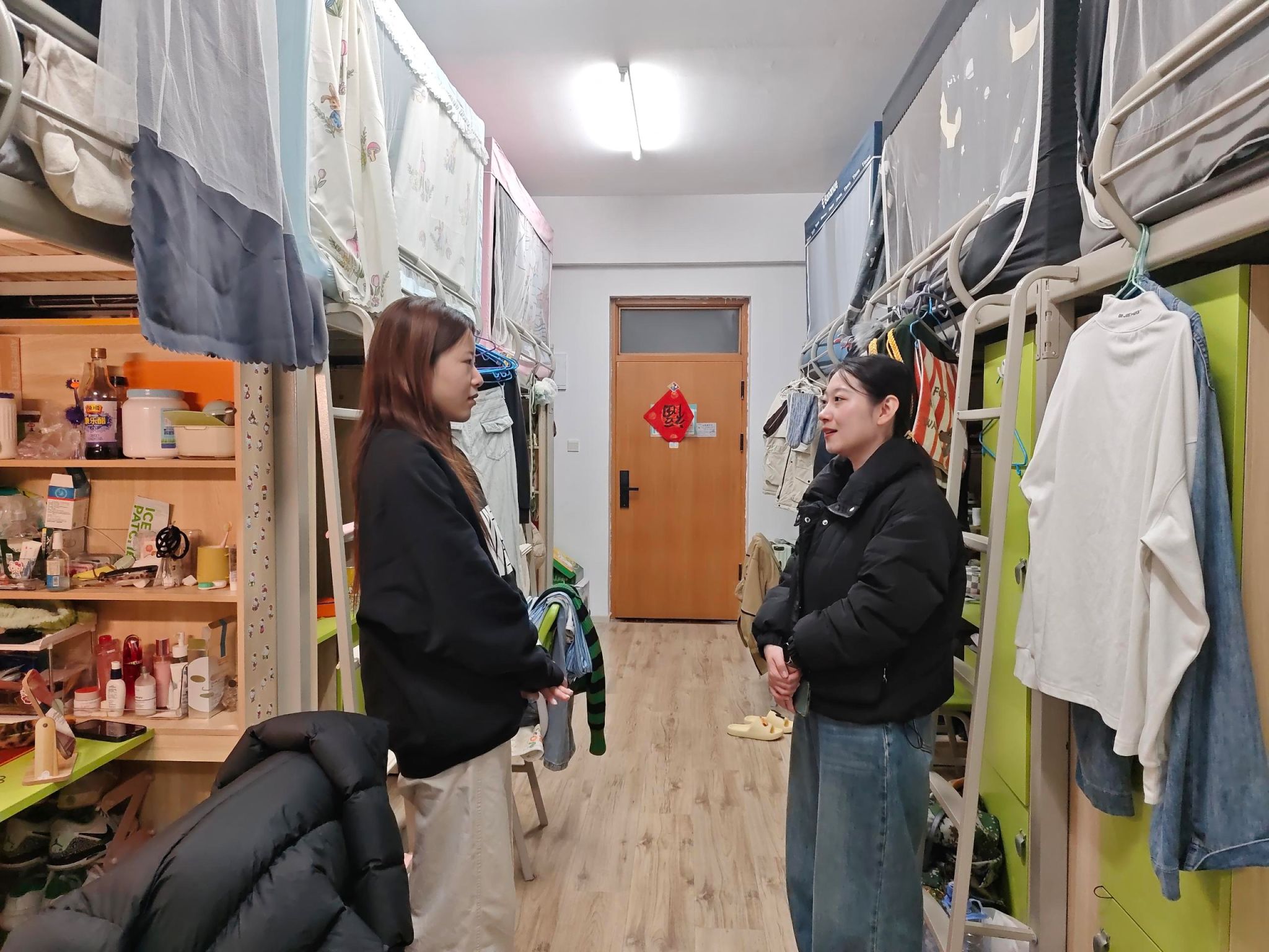 宿舍作为学子在校的“温暖港湾”,成为抵御寒冬的重要防线。为让学生感受到实实在在的关怀与暖意,有效预防冬季感冒,辅导员们带着对学生的牵挂,逐间走进宿舍,与学生面对面亲切交流,让宿舍的温暖不仅停留在室温,更流淌在师生心间。
