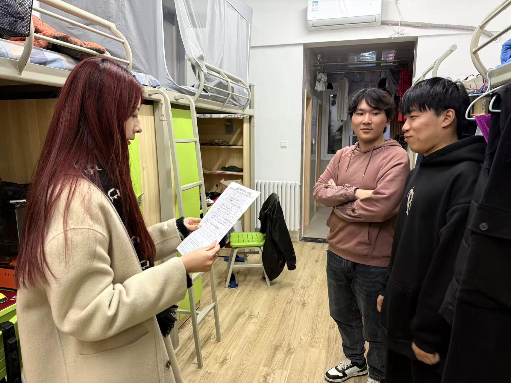 一句句暖心叮嘱、一次次细致排查、一件件务实举措,让宿舍充满温情。此次宿舍走访活动,既是关爱学生成长、落实立德树人根本任务的具体实践,也进一步拉近了师生距离。走访活动,不仅排查了安全隐患,普及了安全知识,更拉近了辅导员与学生之间的距离。此后,学院将持续开展宿舍安全常态化检查,同时不断强化学生安全意识和自我保护能力,为学生营造安全、健康、温暖的住宿环境,助力学子安心学习、快乐生活。
