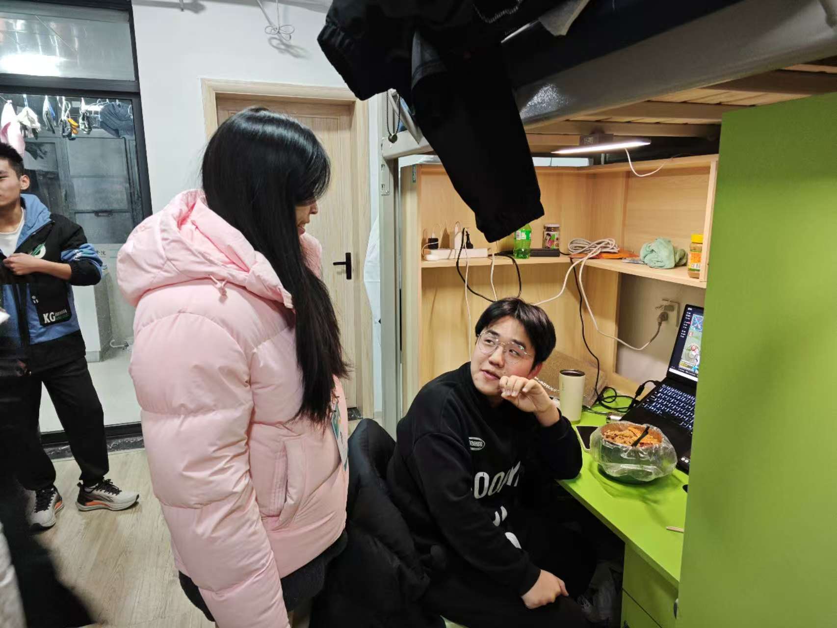 夜幕降临,校园渐趋静谧。为切实了解学生学习生活状态,传递学校的关怀与温暖,12月11日,通信工程学院全体辅导员及学生会生活权益部成员在宋宏越副院长的带领下组成宿舍走访小组,深入学生宿舍开展入寝关怀活动,与同学们面对面交流,倾听心声、解决难题,宿舍里洋溢着浓浓的暖意。