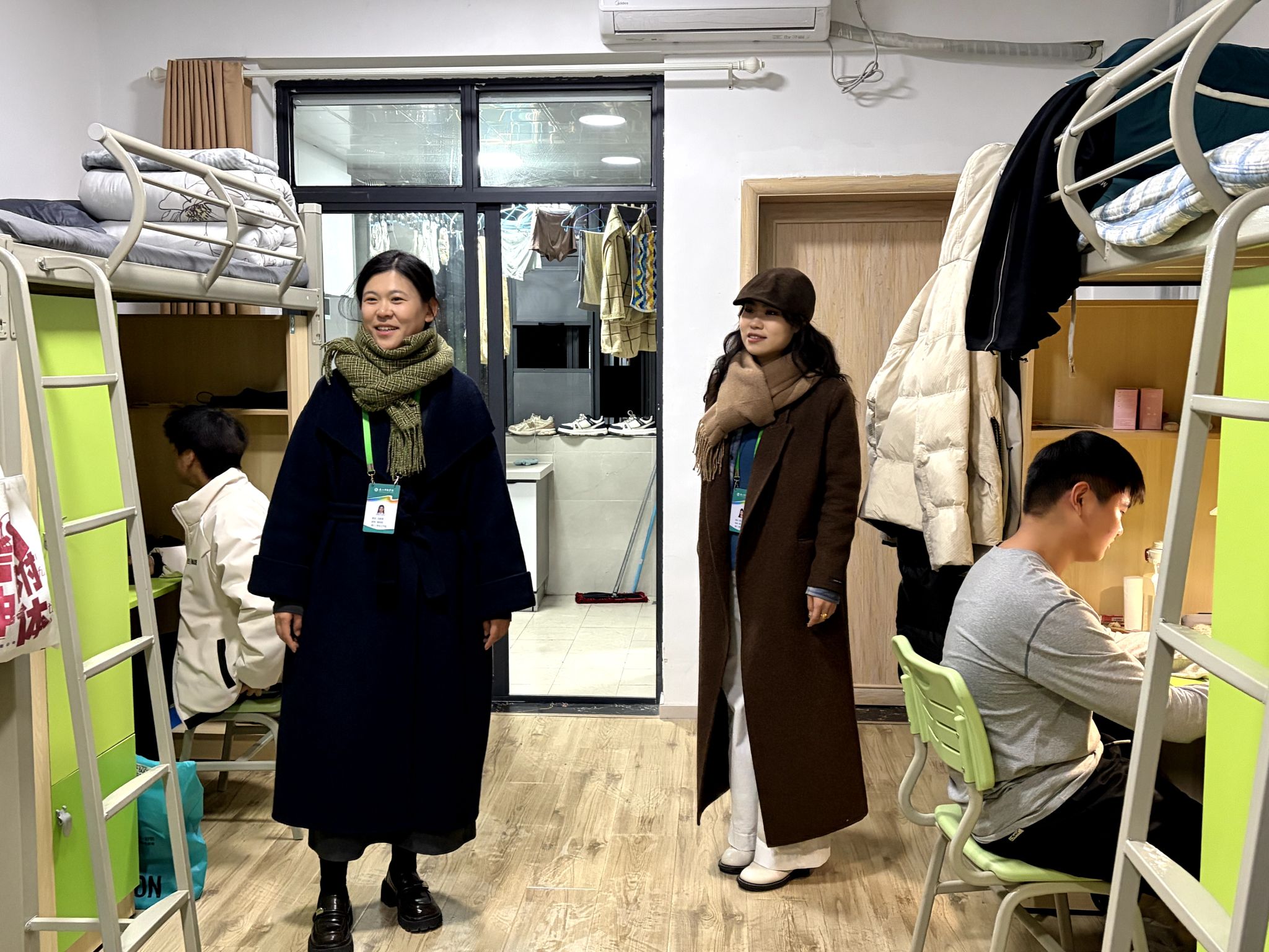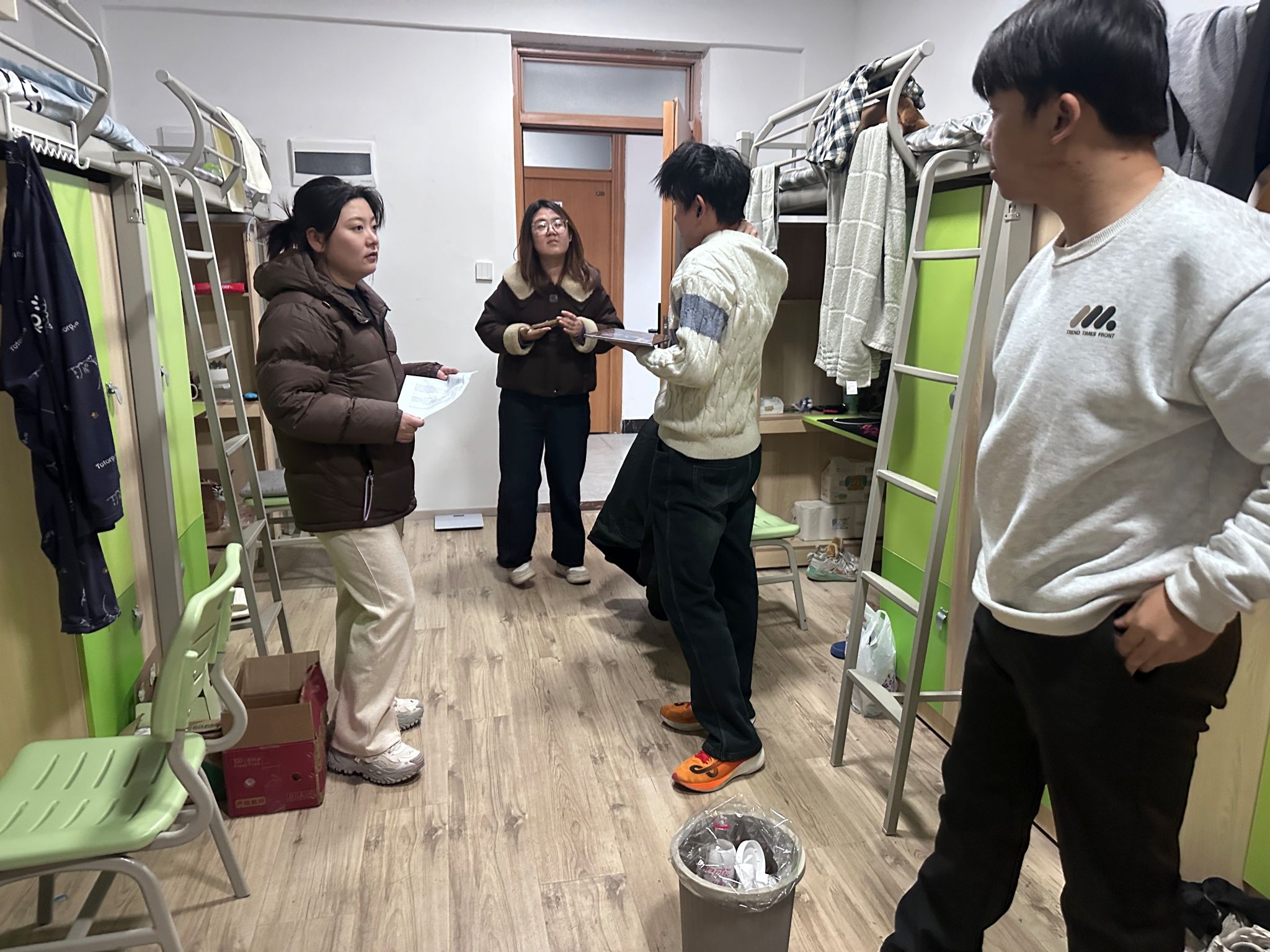 为进一步深化师生交流,全面了解学生宿舍生活状况,推进学生寝室规范化、安全化、文明化建设,营造良好的学习生活环境,2025年12月11日智能工程学院全体辅导员深入育英书院C栋开展寝室走访活动并进行网络思想政治教育。此次走访将精细化管理与人文关怀深度融合,为学生成长保驾护航,为校园安全筑牢夯实基础。