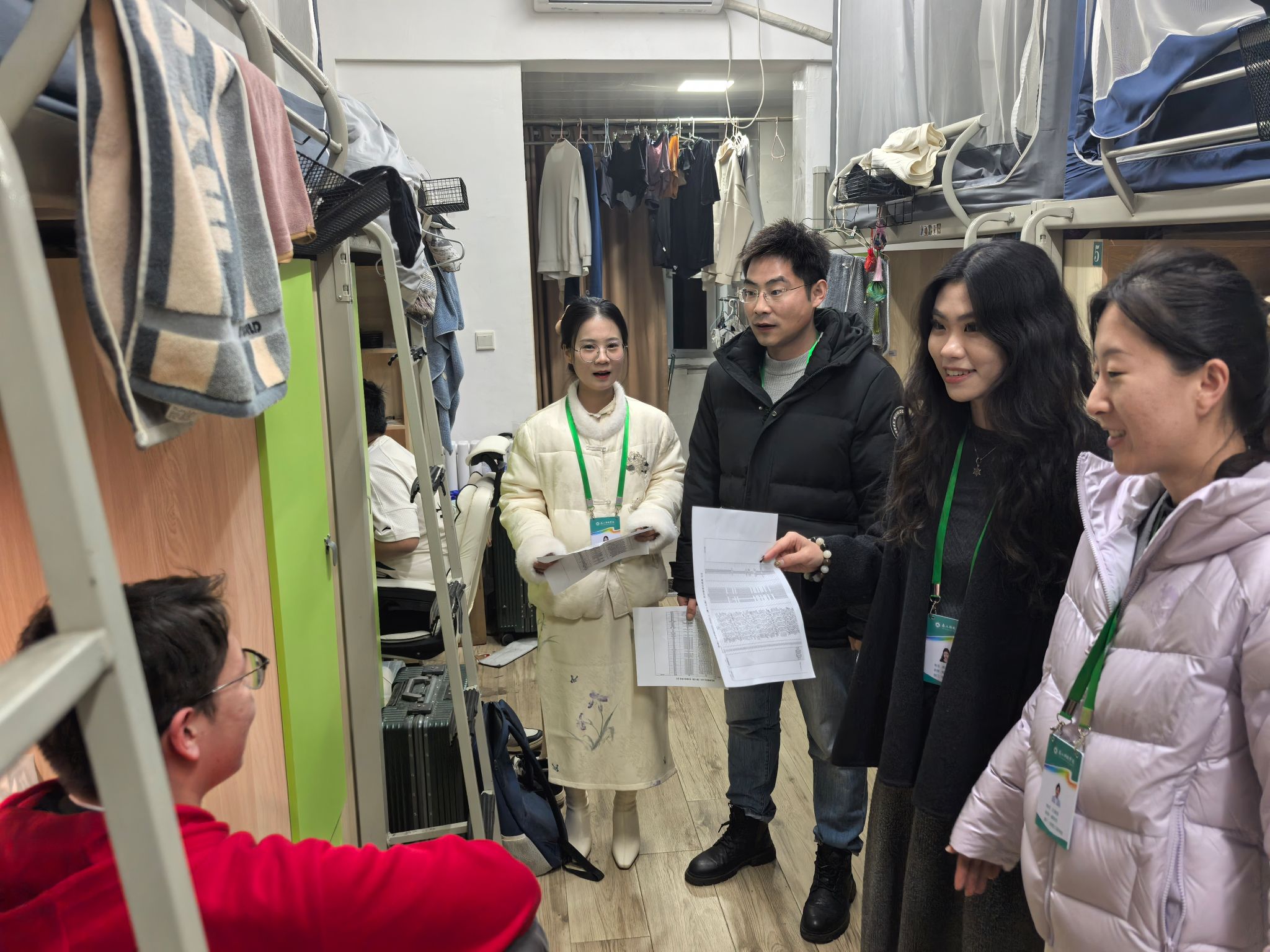 为进一步深化师生交流,全面了解学生宿舍生活状况,推进学生寝室规范化、安全化、文明化建设,营造良好的学习生活环境,2025年12月18日智能工程学院全体辅导员深入育英书院A、B栋开展寝室走访活动并进行宿舍隐患与食品安全排查工作。此次走访学院辅导员与异科导师一起,为提升学生食品安全意识,为校园安全筑牢夯实基础。