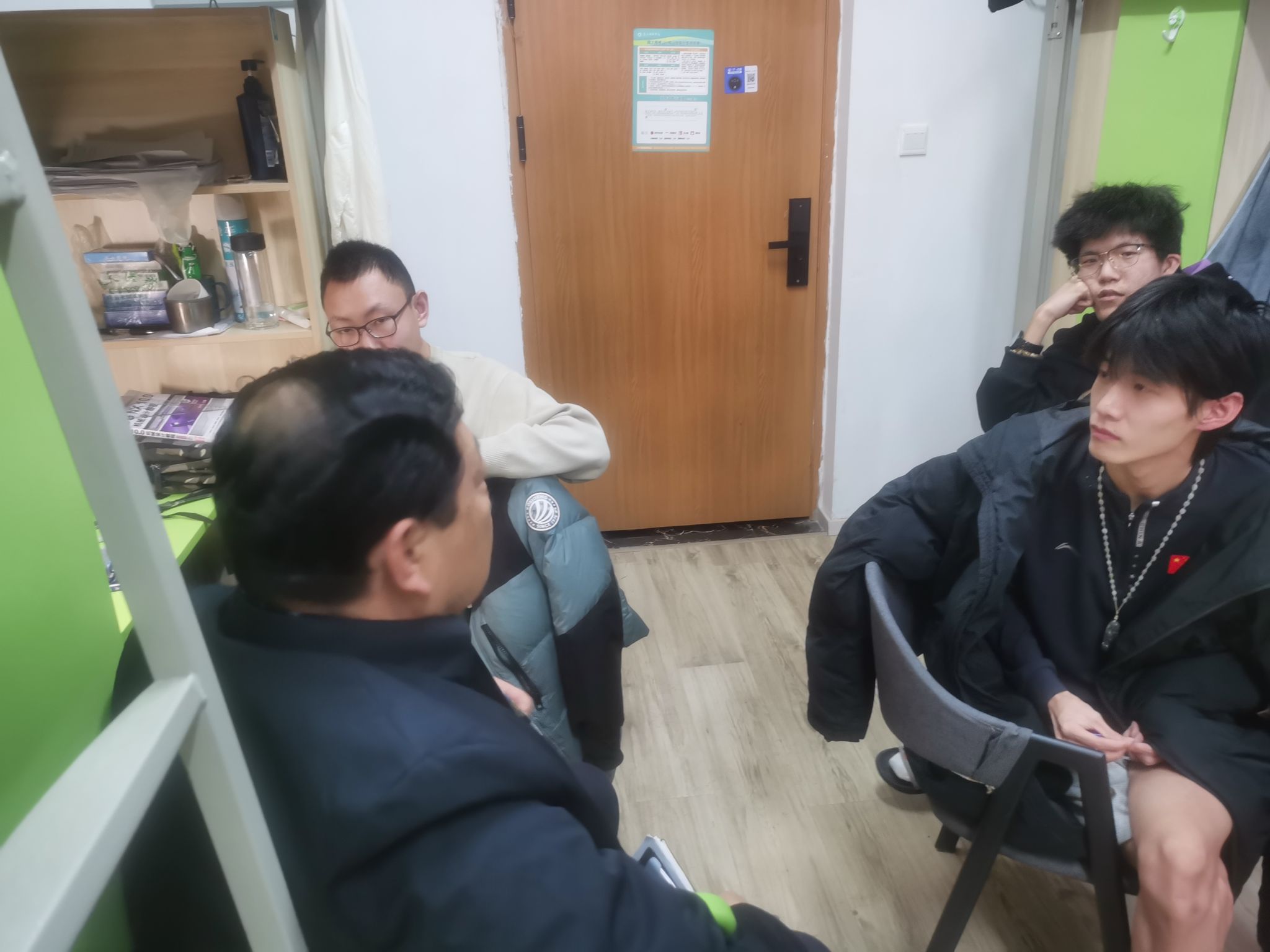 此次走访累计深入190间学生宿舍,与1062名学生进行了深度交流。辅导员与异科导师仔细询问了同学们的学习、生活情况,认真聆听了同学们的需求与建议,并对宿舍的安全卫生、用电规范等进行了细致的排查工作。另一方面,临近期末老师们叮嘱同学们要合理安排作息时间,保持宿舍整洁通风,共同维护良好的居住环境。