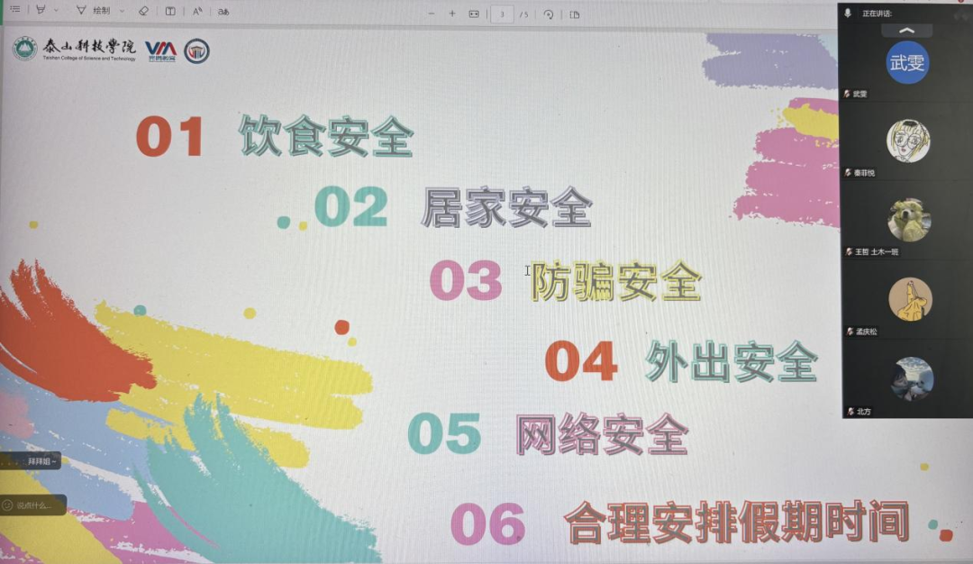 此次主题班会借助线上形式达成了安全教育的全面覆盖,进一步强化了学生的安全防范意识,提升了他们的自我保护能力。未来,建筑工程学院将持续深入推进安全教育工作,采取常态化、精准化的教育举措,织密学生安全防护网络,为培养德智体美劳全面发展的时代新人筑牢安全根基。