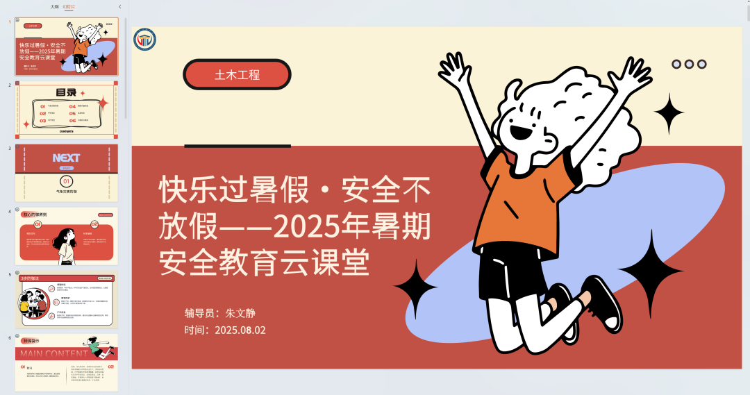 辅导员朱文静通过腾讯会议平台召开了“快乐过暑假・安全不放假”暑期安全教育云课堂,土木工程专业140余名学生在线参与了此次课程。会议结合实际情况以及学校最新的安全提示,针对暑期高发的风险开展了系统化指导。会上,朱老师借助真实案例和数据图表,着重剖析了暑期存在的七大安全隐患。在气象灾害防御部分,朱老师展示了受灾影像,详细阐释了“三避三断”避险法则,还介绍了针对受灾困难学生的补助政策。针对溺水事故高发这一问题,朱老师着重强调了“同伴落水四不原则”。在交通出行方面,朱老师通过互动投票的方式,检验学生对“车辆盲区”“电动车头盔佩戴”等知识的掌握程度。尤为重要的是,朱老师强化了反诈防骗教育。现场模拟“冒充导师诈骗”的话术,拆解新型诈骗骗局,并指导学生安装国家反诈中心 APP。结合“驴友被困”的新闻事件,朱老师推出了《大学生旅行安全自查清单》。同时,朱老师针对土木工程(专升本)24 级准毕业生进行了就业安全提醒。朱老师强调,要构建“辅导员-班委-家长”三级联络网,并要求离校学生落实“安全提醒”工作。
