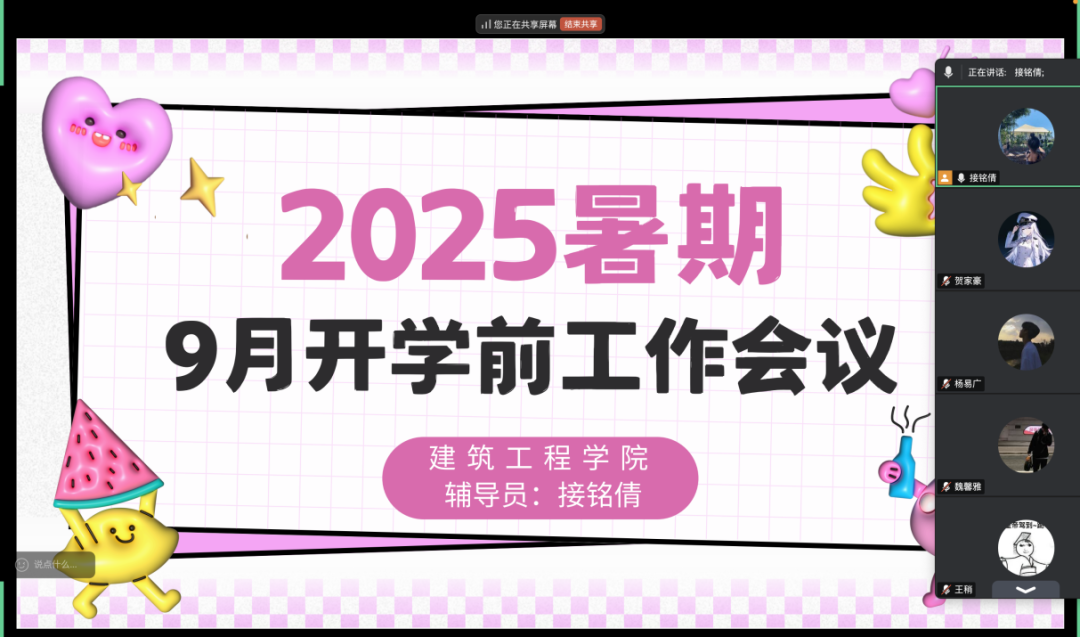 这场线上主题班会,涵盖了实用的安全知识,让同学们做好充足的开学准备来迎接新学期 。接下来,建筑工程学院将持续做好安全保障工作,陪伴同学们安全成长、顺利前行。