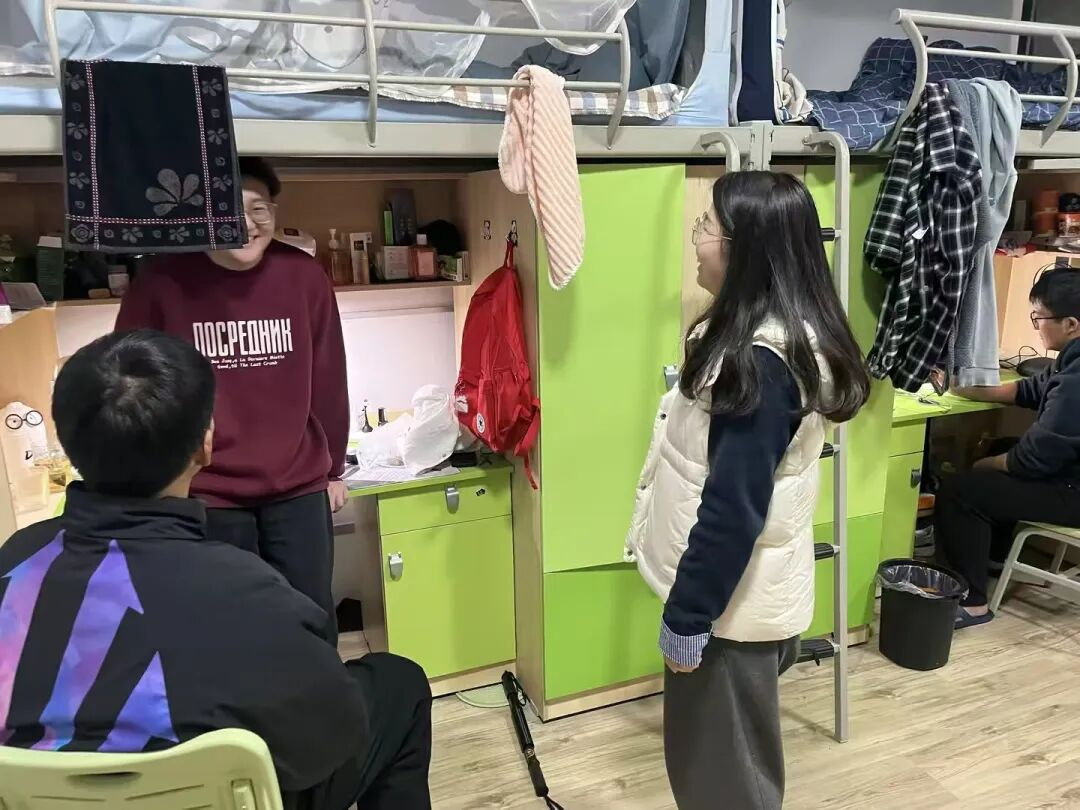 方艺老师全覆盖走访25级所有本科宿舍,重点关注学生假期安排、宿舍安全与卫生。多数学生规划合理、宿舍整洁,但个别宿舍存在用电不规范、物品杂乱问题,已现场指出并督促整改;并与学生深入交流,了解其学习生活需求,解答学业、就业疑问。后续将持续跟进整改,定期开展安全卫生检查,为学生营造安全舒适环境。