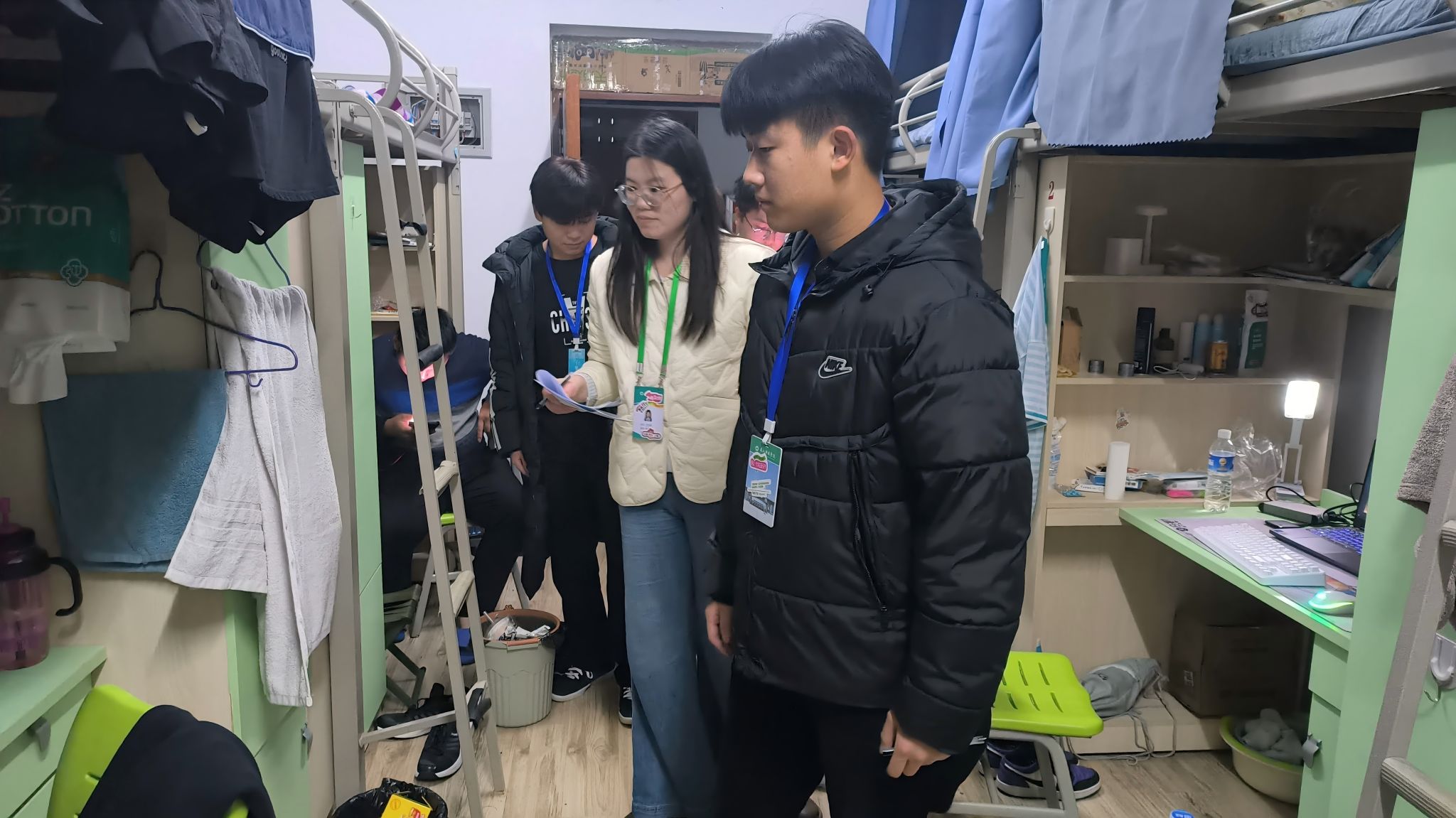 元旦将至,期末临近。为切实筑牢宿舍安全防线,强化学生诚信考试意识,疏导期末备考心理压力,让同学们在安全温馨的环境中喜迎佳节、从容应考,12月25日,智能工程学院组织全体辅导员开展宿舍走访行动。此次行动以“安全排查护平安、诚信教育明底线、心理疏导暖人心”为核心,深入走访瞻岩书院、九河书院72间宿舍,将学院的关怀与指导精准送到宿舍“最后一公里”。