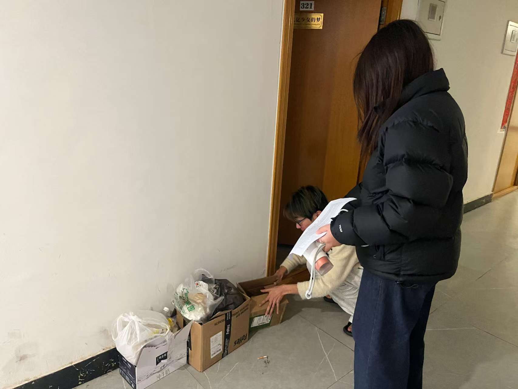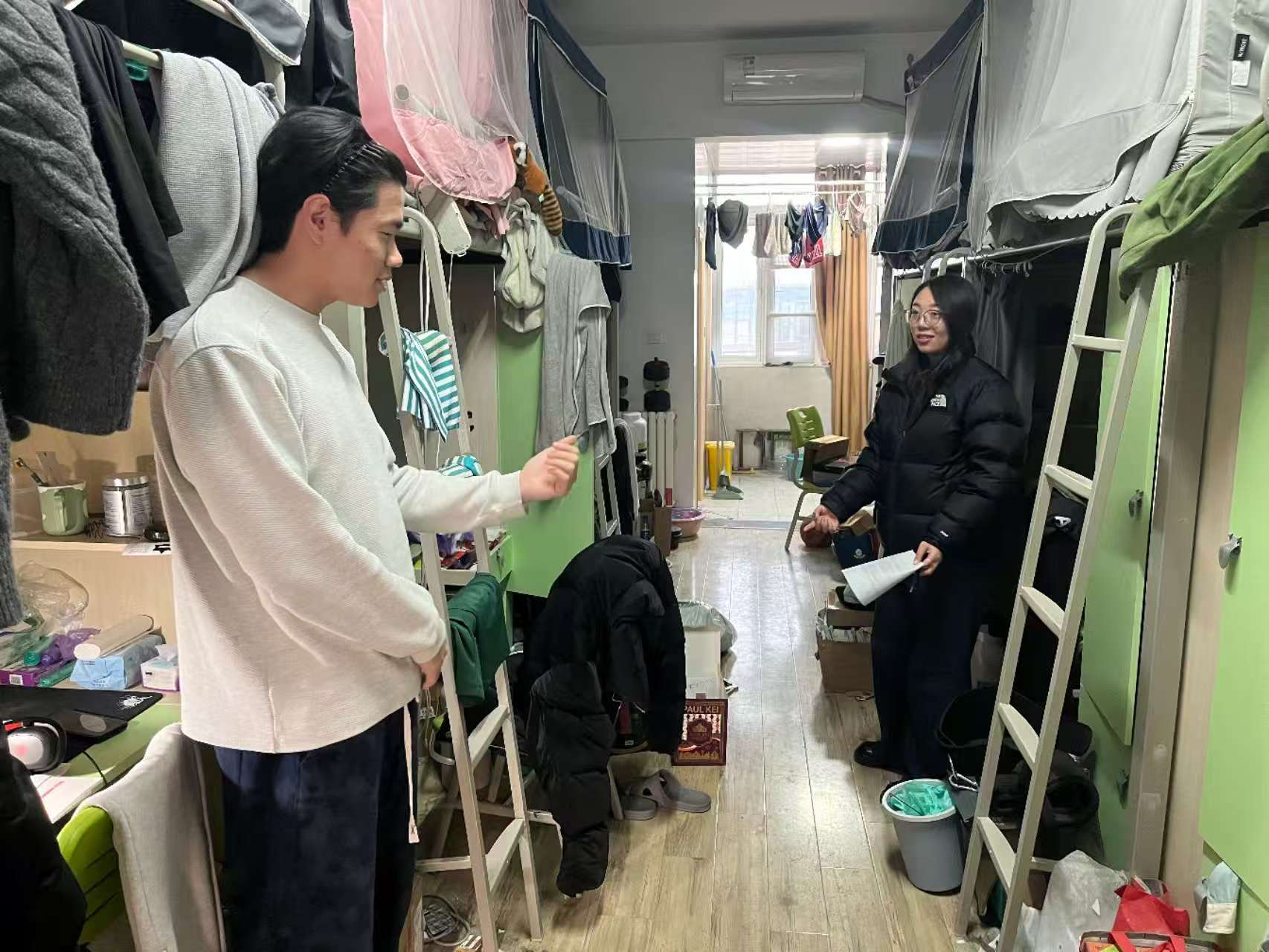 毕业生宿舍是本次走访的另一重点,对于已离校的毕业生宿舍,老师们逐一敲门确认,细心检查每一扇窗户是否锁紧、每一处水电开关是否关闭,并排查有无遗留杂物、易燃品等安全隐患。老师们将发现的问题逐一记录,及时整改,确保宿舍的安全与整洁。