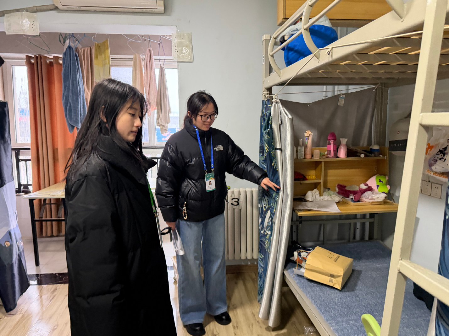 本次宿舍走访以“全覆盖、除隐患、保平安”为原则,涵盖智能工程学院所有学生宿舍,走访过程中各位辅导员老师逐间走访宿舍,系统检查阳台门窗是否锁闭完好、烟雾报警器是否完好或被遮挡、是否存在私拉乱接电线和违规使用电器、有无易燃物品遗留等,并查看卫生状况,切实做到不留死角、不存盲区。