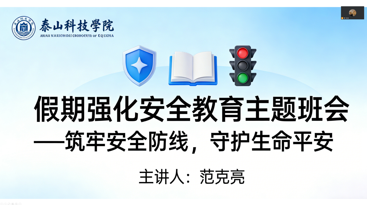 春节的脚步日益临近,为切实守护全院学生假期人身与财产安全,从源头上防范各类安全事故发生,大数据学院以“生命至上、安全第一” 为核心理念,组织全体辅导员迅速行动,通过线上主题班会、班级群精准推送、重点群体一对一沟通等多种形式,开展全方位、多层次的假期安全教育活动,为学子平安度假筑牢坚实安全屏障。