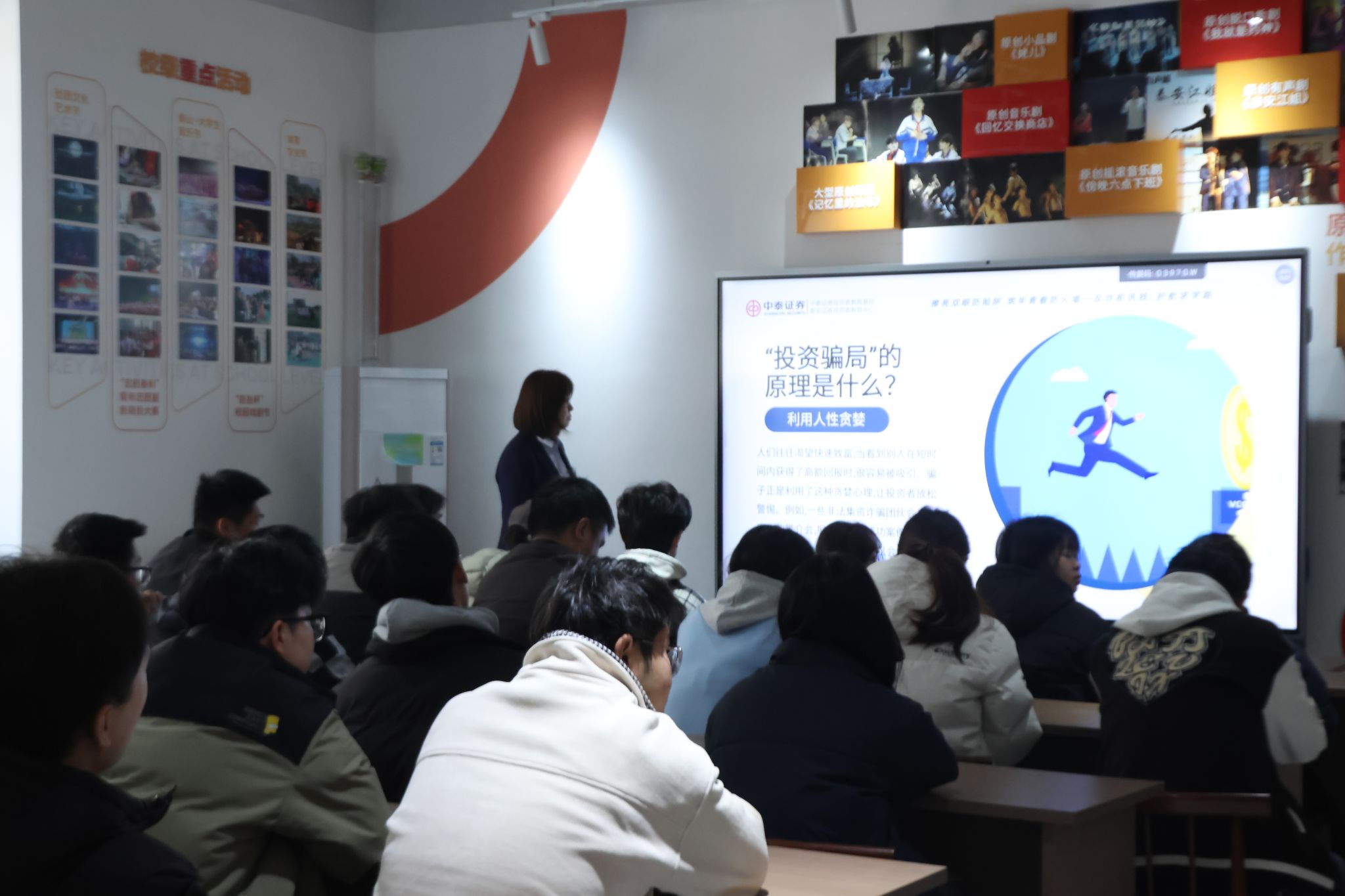 为切实增强青年学生的金融风险防范意识与自我保护能力,通信工程学院近日邀请中泰证券走进敢当书院208教室,为学院学子带来一场内容丰富、贴近实际的金融知识普及暨反诈防骗专题宣讲活动。活动围绕金融消费者权益保护、网络金融风险识别、反诈防骗技能提升等内容展开,帮助同学们在轻松的学习氛围中掌握实用的金融安全知识,筑牢校园金融“防火墙”。