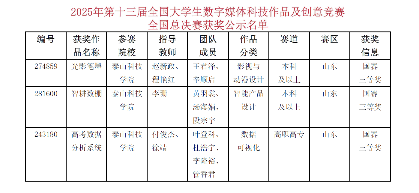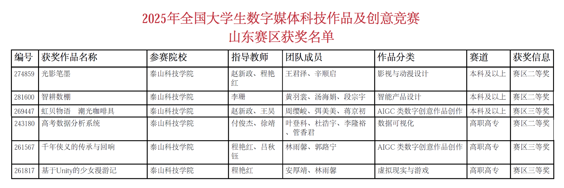 本届数媒大赛吸引了众多高校的优秀选手踊跃参与,我校大数据学院的参赛学子们经过精心准备和激烈角逐,最终在影视与动漫设计、智能产品设计、AIGC类数字创意作品创作、数据可视化、虚拟现实与游戏多个竞赛方向中脱颖而出。这些获奖同学在比赛中展现出了扎实的专业基础和良好的实践能力,充分展现了我校学生的风采。