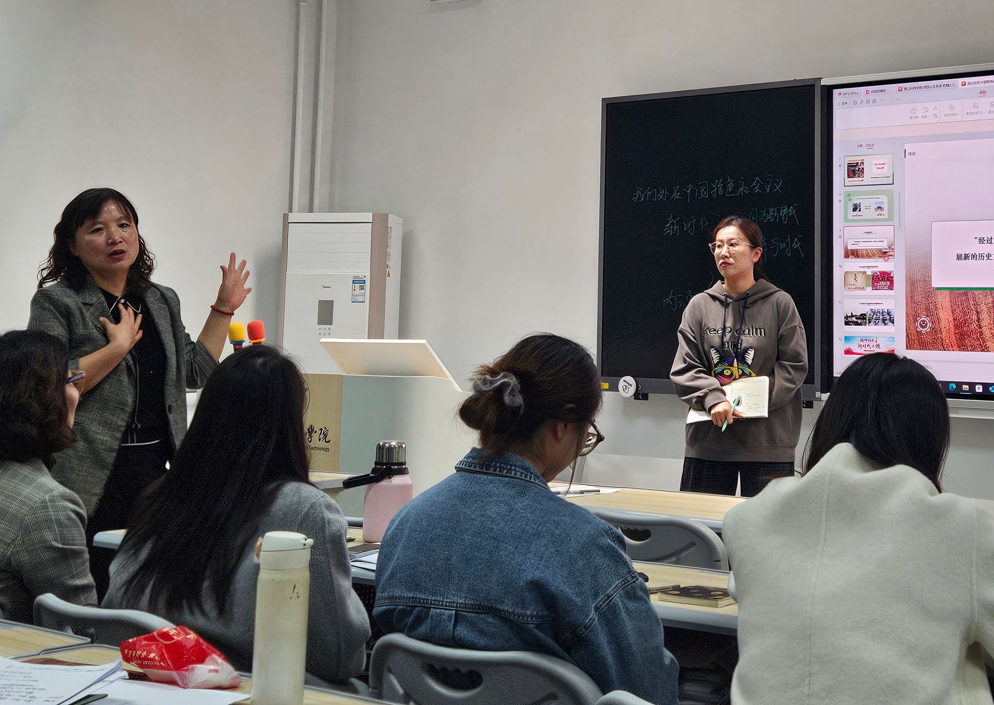 在随后的青年教师教学展示环节,我院王玉鑫老师进行了20分钟的教学片段展示。任凤琴教授从教学逻辑、案例适配性等维度予以细致点评,在肯定亮点的同时提出了改进建议。互动交流中,教师们围绕教学难点踊跃提问,就“如何平衡理论深度与学生接受度”等议题展开热烈研讨,形成了“以评促改、以研促教”的浓厚氛围。