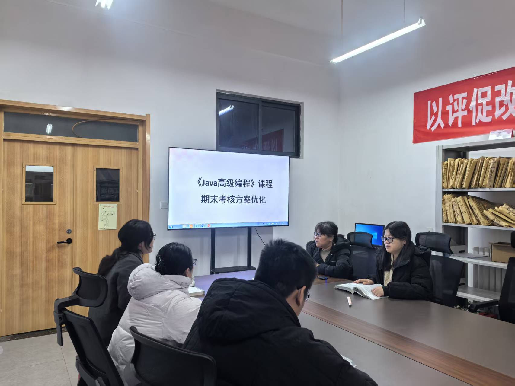 为加强一流课程建设,持续推进学校“教育教学三提三创”主题年活动,12月12日,大数据学院组织开展了《Java高级编程》课程期末考核方案的优化工作。此次优化聚焦于修改完善考核要求、设计报告模板以及制定评分标准等环节,由陈端君、魏方娜等教师组成课题组,共同推进此项工作。