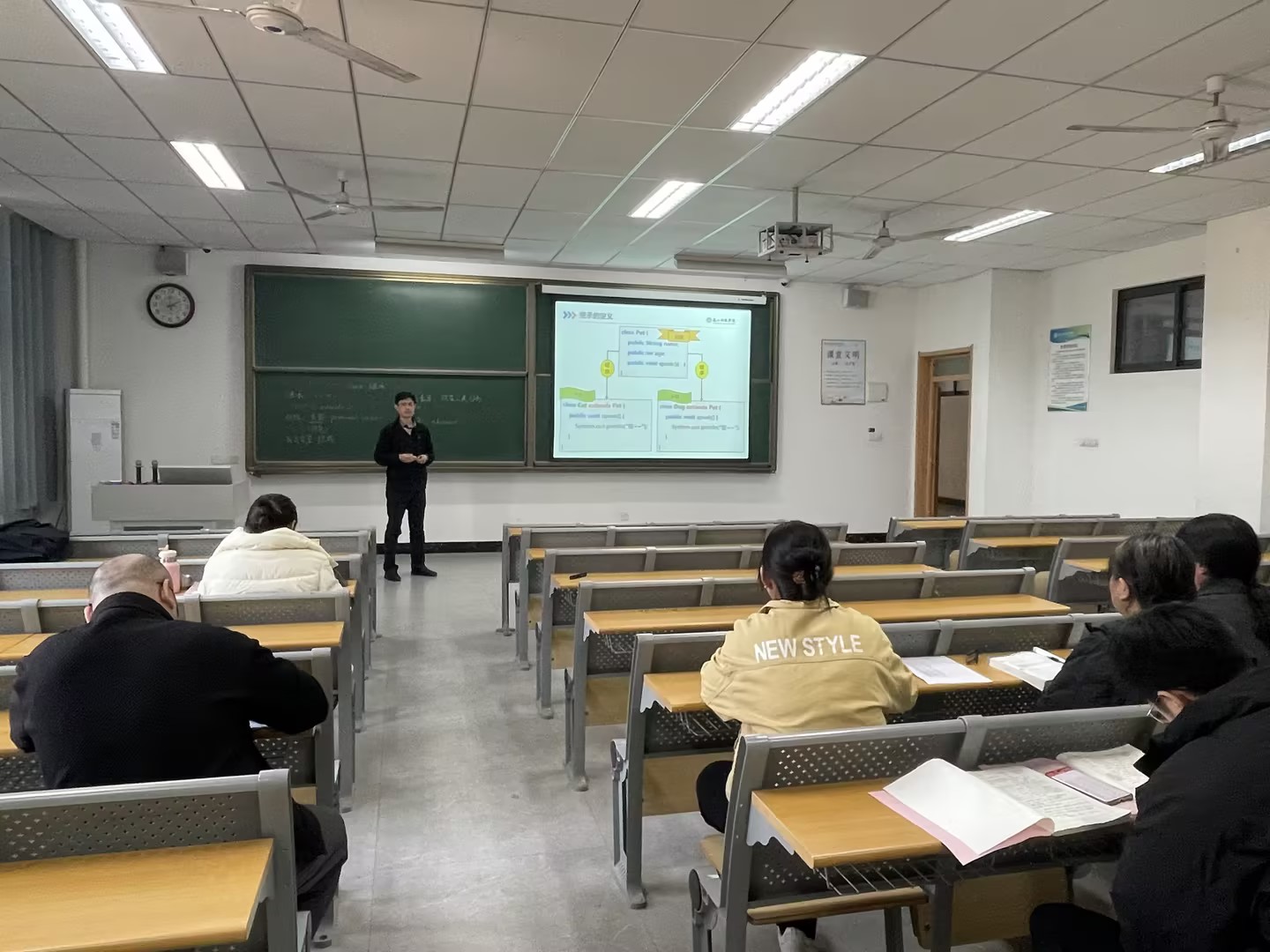 徐驰老师主讲的《面向对象程序设计(Java)》则聚焦“继承与接口”这一核心概念。他巧妙运用贴近生活的比喻,形象阐释了继承的语义与代码实现,帮助学生理解接口的抽象性与灵活性。徐老师在讲解继承概念时,自然融入课程思政元素,鼓励学生在技术学习中传承工匠精神,在创新发展中不忘守正笃实,充分体现了将专业内容与价值引领有机融合的教学方式。