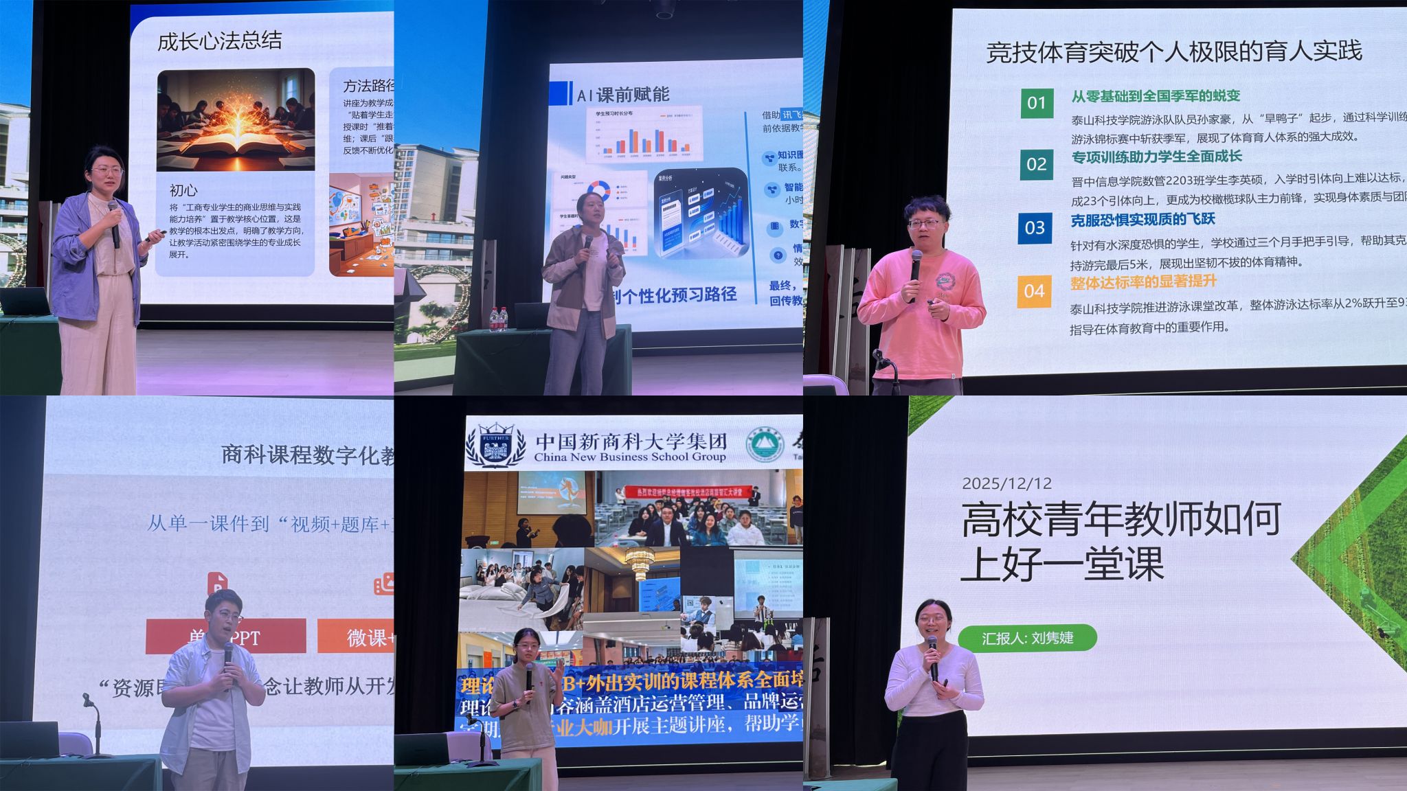 夯实教学根基,浸润思政力量。泰山科技学院教学督导主任任一鑫教授以《如何备课与上课》为题,结合实践经验,从学情分析、课程设计、教法创新等维度,传授课程“讲透、讲明白、讲活”的实用方法,助力青年教师夯实教学基本功。淬炼商学院董汉彬教授聚焦课程思政建设,强调思政元素“如盐在水、润物无声”的融入原则,通过挖掘社会热点、融入人文典故等路径,实现知识传授与价值引领统一,提供课程思政建设实操方案。
