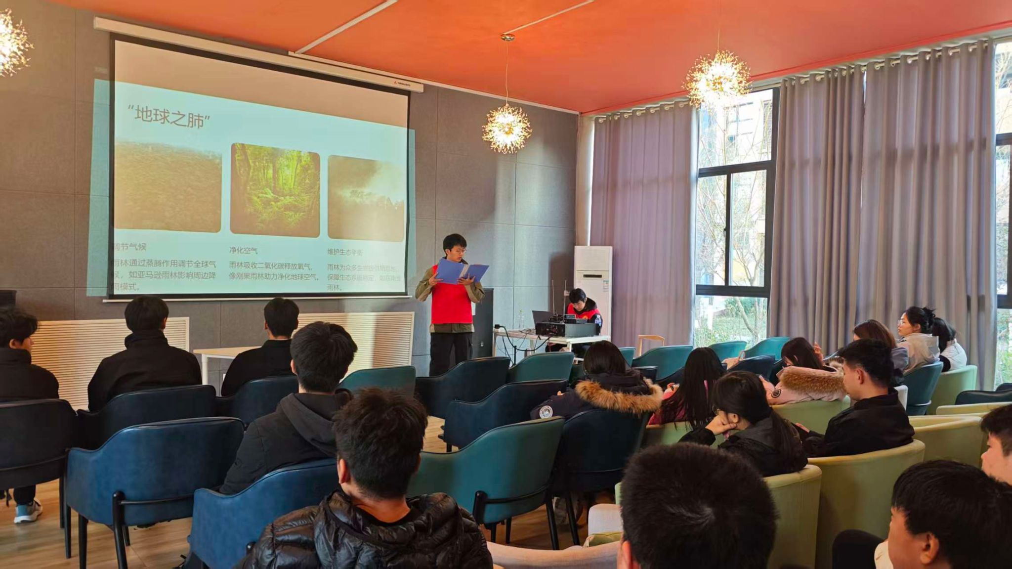 热带雨林——这片地球最繁茂的生态宝库蕴含着自然的馈赠。志愿者们以“讲”为媒、以“行”为本,通过专题讲座、互动展览、环保手作、公益倡议等形式,向在校师生普及热带雨林的生态价值与保护紧迫性,掀起一场“在泰山脚下,心系热带雨林”的绿色浪潮。宣讲内容紧扣海南热带雨林国家公园核心,从“热带雨林——地球宝库”的背景切入,深入解读其作为“生物多样性基因库”的独特价值,通过地理位置、生态数据等翔实资料,让师生全面了解国家公园在生物多样性保护、生态安全屏障构建中的重要作用。