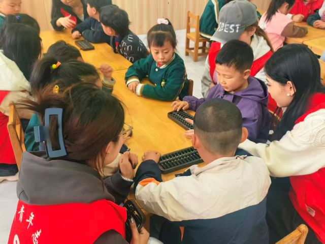 为进一步弘扬奉献、友爱、互助、进步的志愿精神,切实关爱幼儿健康成长,营造温馨和谐的校园氛围,2026年3月27日,泰山科技学院淬炼商学院会计学(专升本)25级7班、25级8班团支部的同学们们走进领航光谱幼儿园,化身小老师,带着算盘与孩子们共同开启了一场趣味满满的“数字寻宝大作战”。本次“珠趣童蒙”志愿服务活动,不仅促进了同学们之间的紧密合作,更让大家以耐心与爱心陪伴幼儿、尽职尽责开展服务,现场氛围温馨又欢乐。