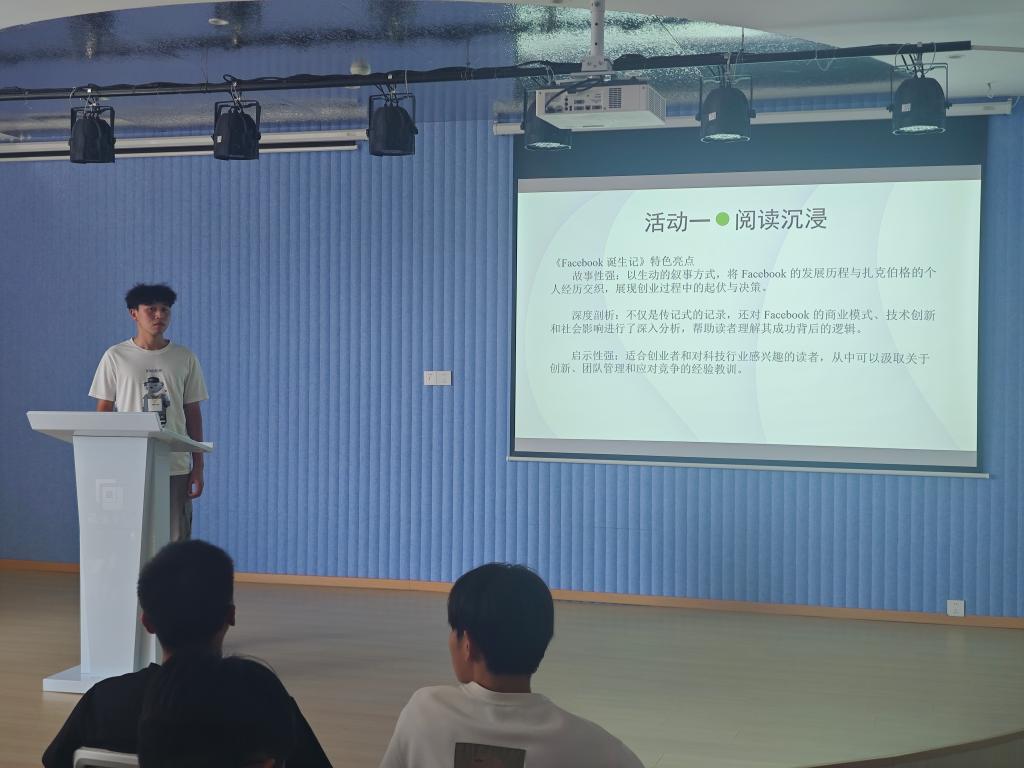 古人云:“书中自有黄金屋,书中自有颜如玉。”在书籍的世界里,我们能穿越时空,见证不同时代的精彩故事,汲取前行的力量。为进一步丰富同学们的知识储备,培养创新思维与创业意识,智能工程学院持续推进“信息产业大咖传记阅读计划”,在范克健和李一明两位老师的组织下,机械电子工程(高本)24-1班的同学于9月10日开展了以《facebook诞生记》为主题的阅读分享活动。