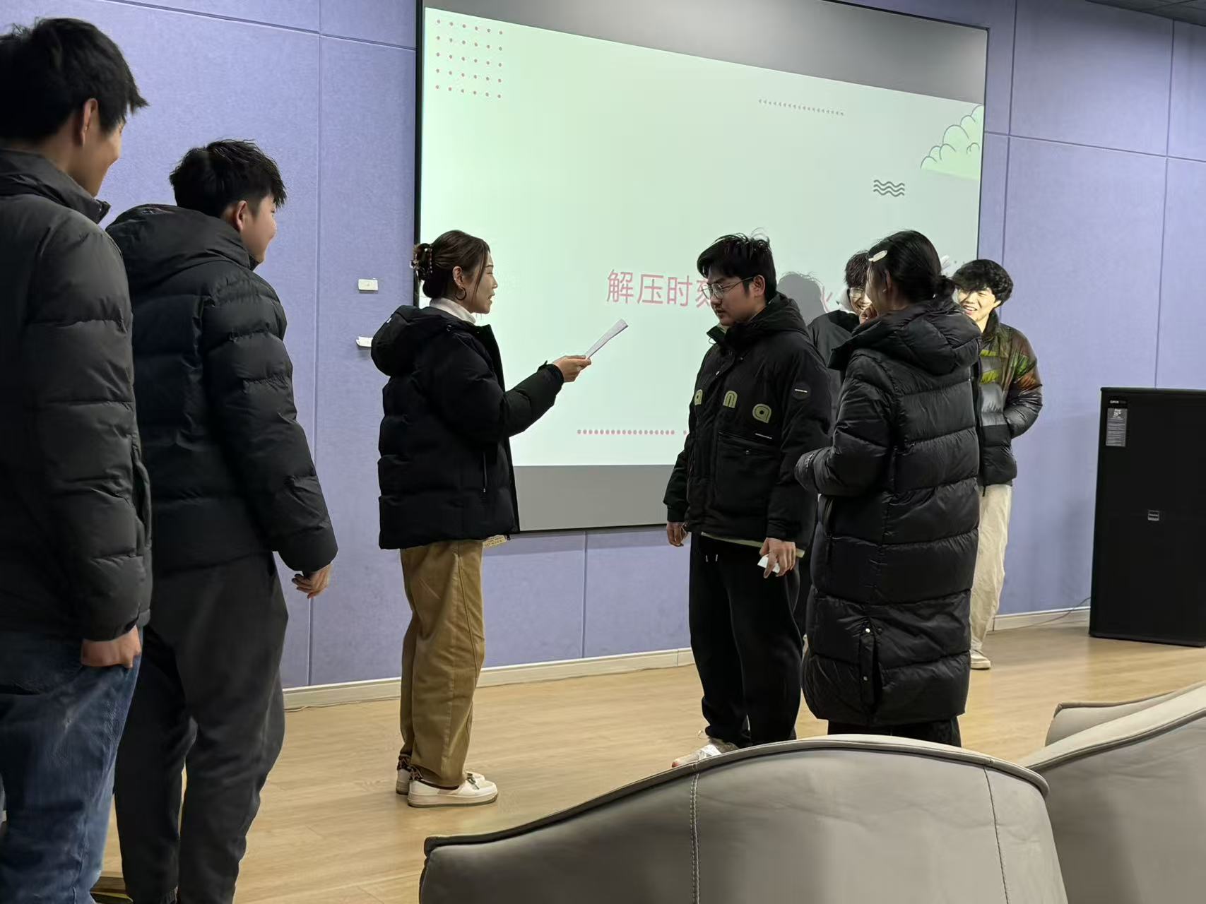 为帮助同学们缓解学业与生活的压力,拥抱冬日暖阳。12月15日下午15:30-16:00,由共青团泰山科技学院委员会主办、淬炼商学院2025级承办、淬炼商学院2025级市场营销(本)25-1团支部协办的“暖冬解压实验室:泰科er的成长化学反应”主题活动会在海右书院109顺利开展。这场主题活动会,为来自市场营销(本)25-1的19名同学搭建起了释放情绪和汲取能量的互动平台。