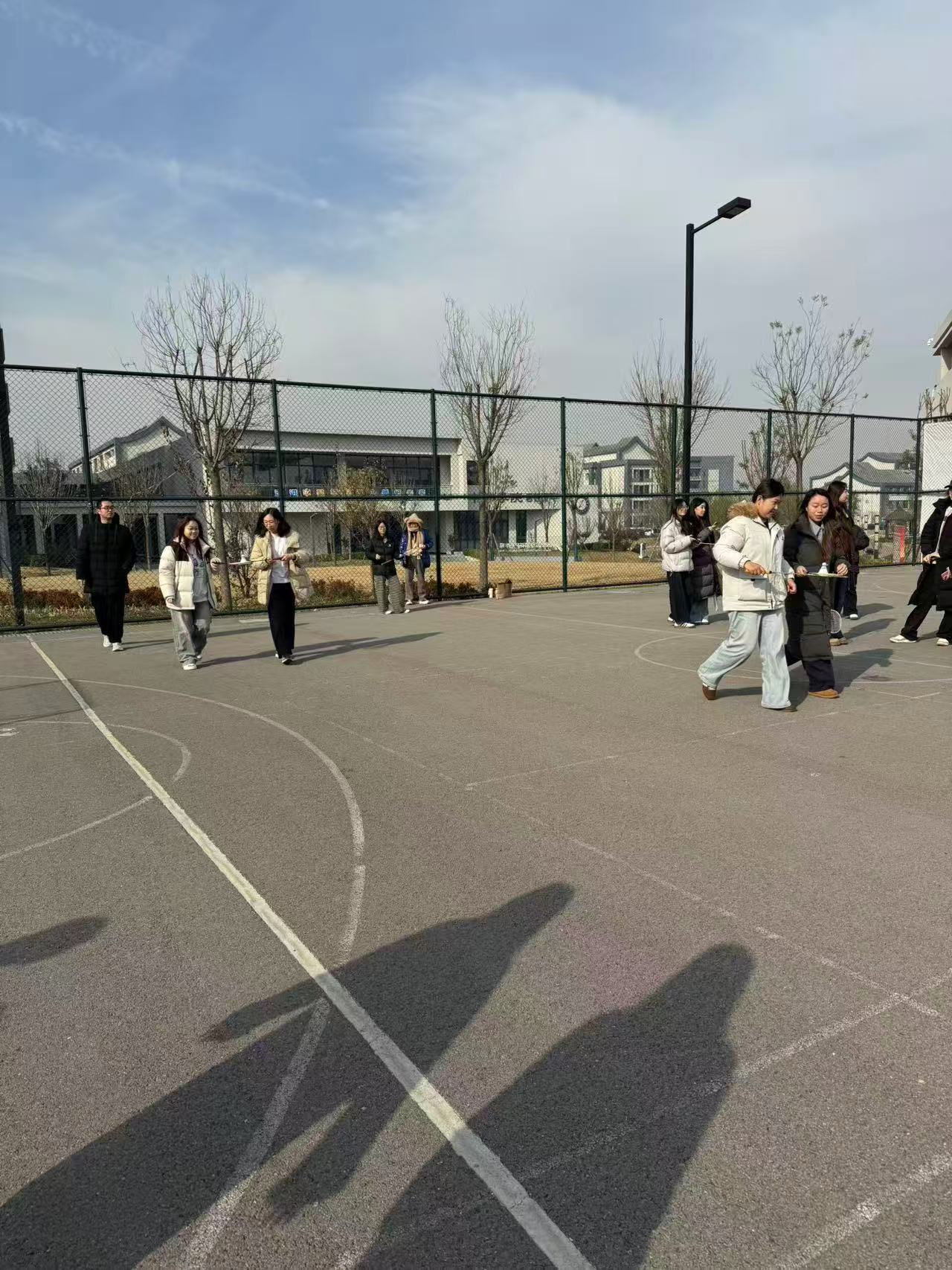 热身结束后,趣味互动赛拉开帷幕。“颠球接力”项目中,全班分为4-5组,每组5-6人。同学们手持球拍,全神贯注地完成每人10次的颠球任务,再迅速传给下一人。现场紧张又欢快,最快完成的小组还收获了小零食奖励。